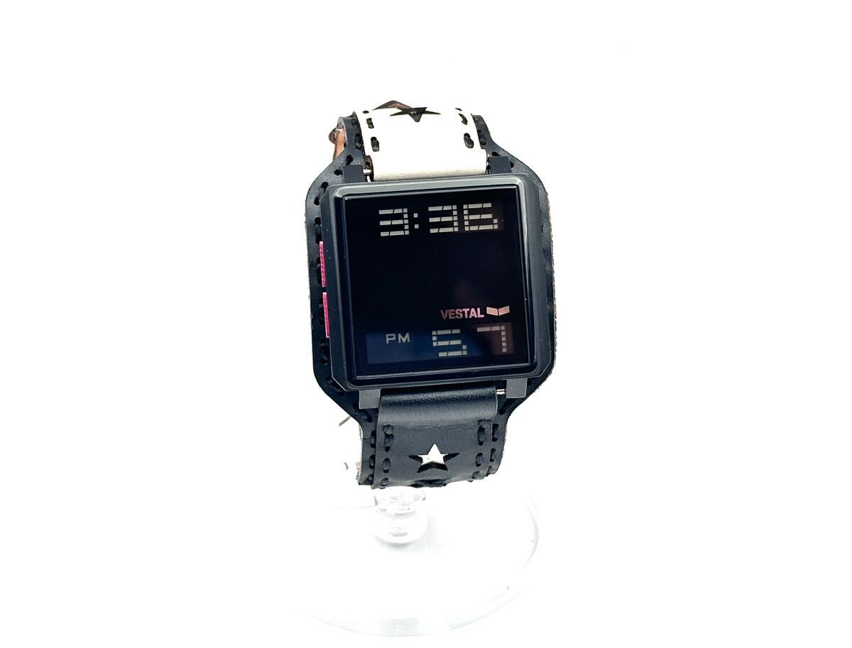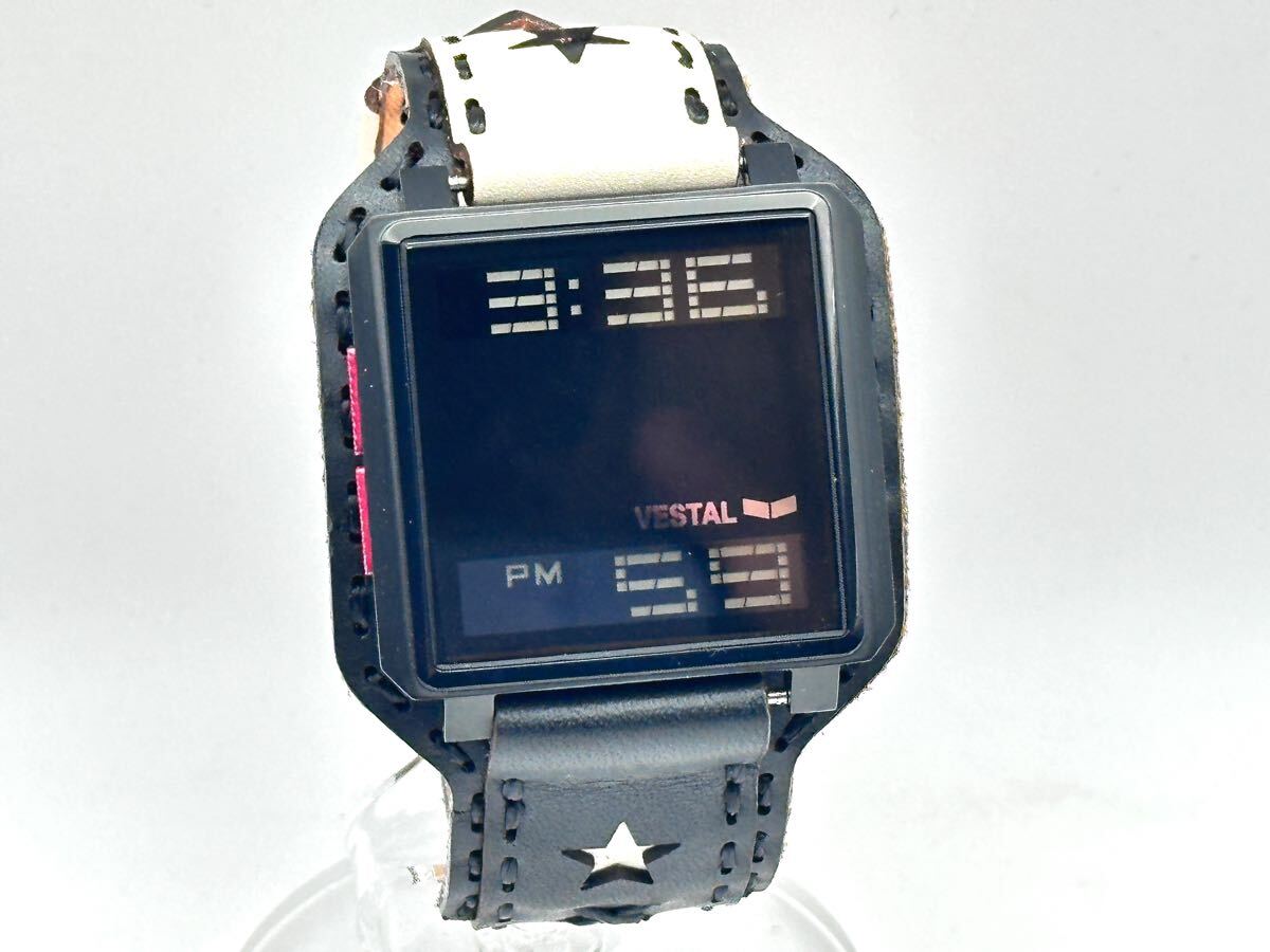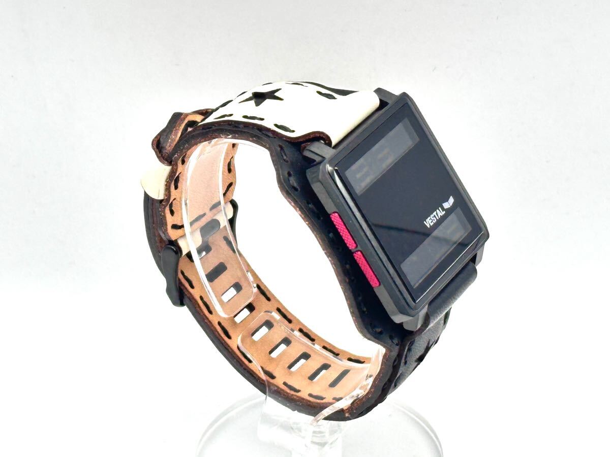 6-20 未使用 廃盤 ベスタル VESTAL オジャガ デザイン OJAGA DESIGNコラボ 本革 レザー デジタル 腕時計 ブラック日本製 希少