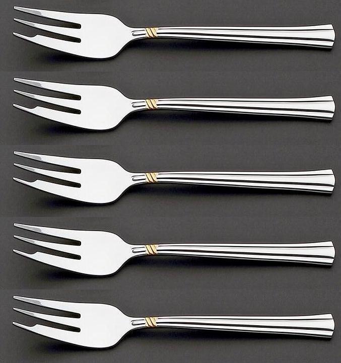 ★ラッキーウッドエメラルド金彩ケーキフォーク5本高級18-10ステンレス使用ミラー金彩仕上げ日本製新品