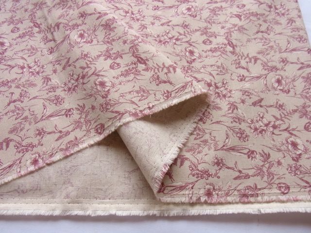KOKKA[コッカ]綿麻シーチング【ナチュラルガーデン:Elegant Botanical(ベージュ×レッド)】[NE2233-A]