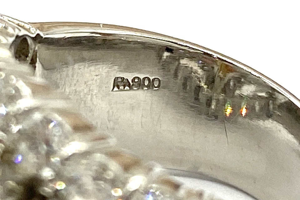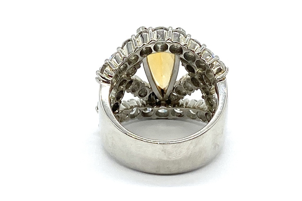 仕様 | IT=3.80ct(彩珠) D=3.08ct ♯12号 主石サイズ 14.8×6.8mm(爪を含む) リング最大幅 20.4mm 19.5g |