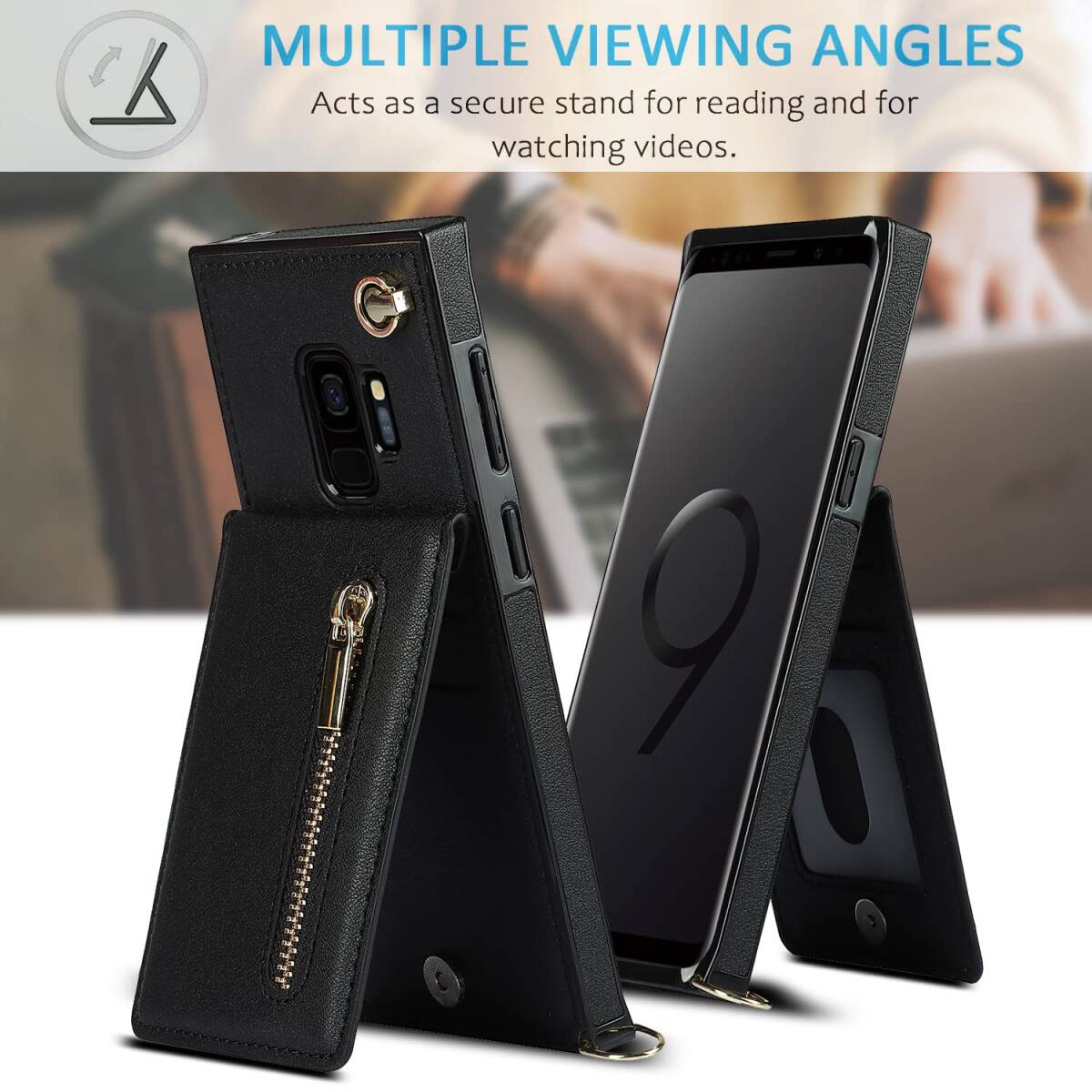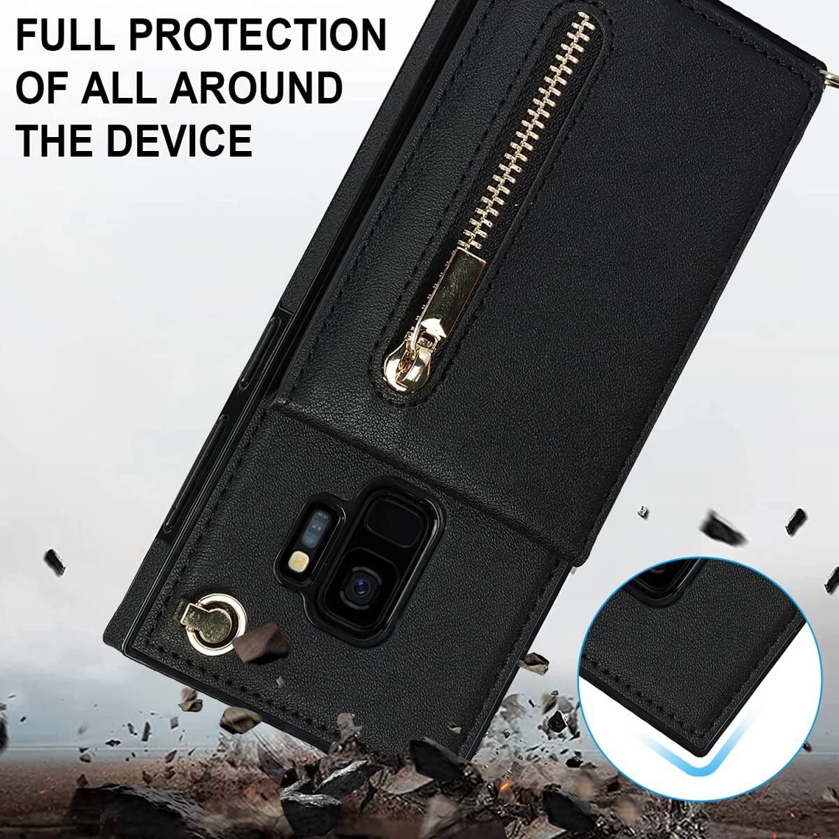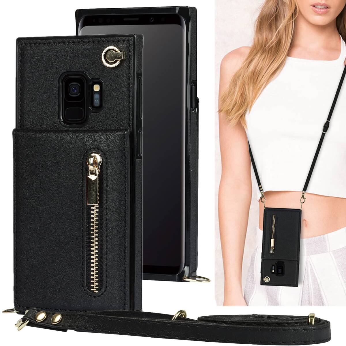 Galaxy S9 ケース 手帳型 ショルダー クロスボディ S9 galaxy ケース SC-02K SCV38 ケース 手帳型 ギャラクシー S9 カバー Galaxy S9 手帳ケース ギャラクシーs9 サムスン SC02K ケース ギャラクシー galaxyS9 ケース CASE 適用 【iCoverCase】 肩がけ 首掛け 斜め掛け カードケース チェーン ファスナー型 ストラップ付き ショルダーケース クロスボディケース カード入れ スマホケース 携帯カバー ブラック