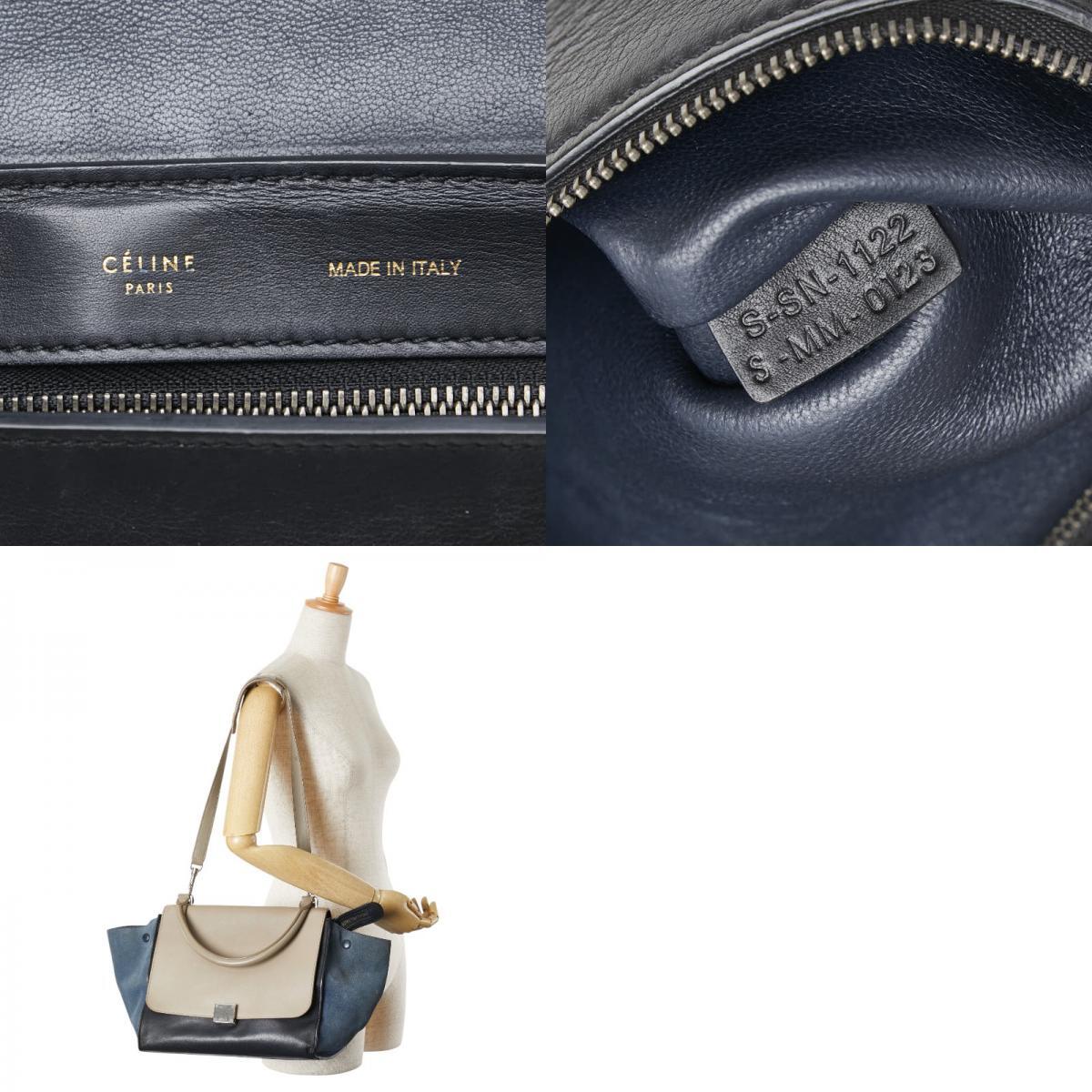 セリーヌ トラペーズ ミディアム トリコロール ハンドバッグ ショルダーバッグ 2WAY ベージュ ブラック ブルー レザー CELINE 【中古】