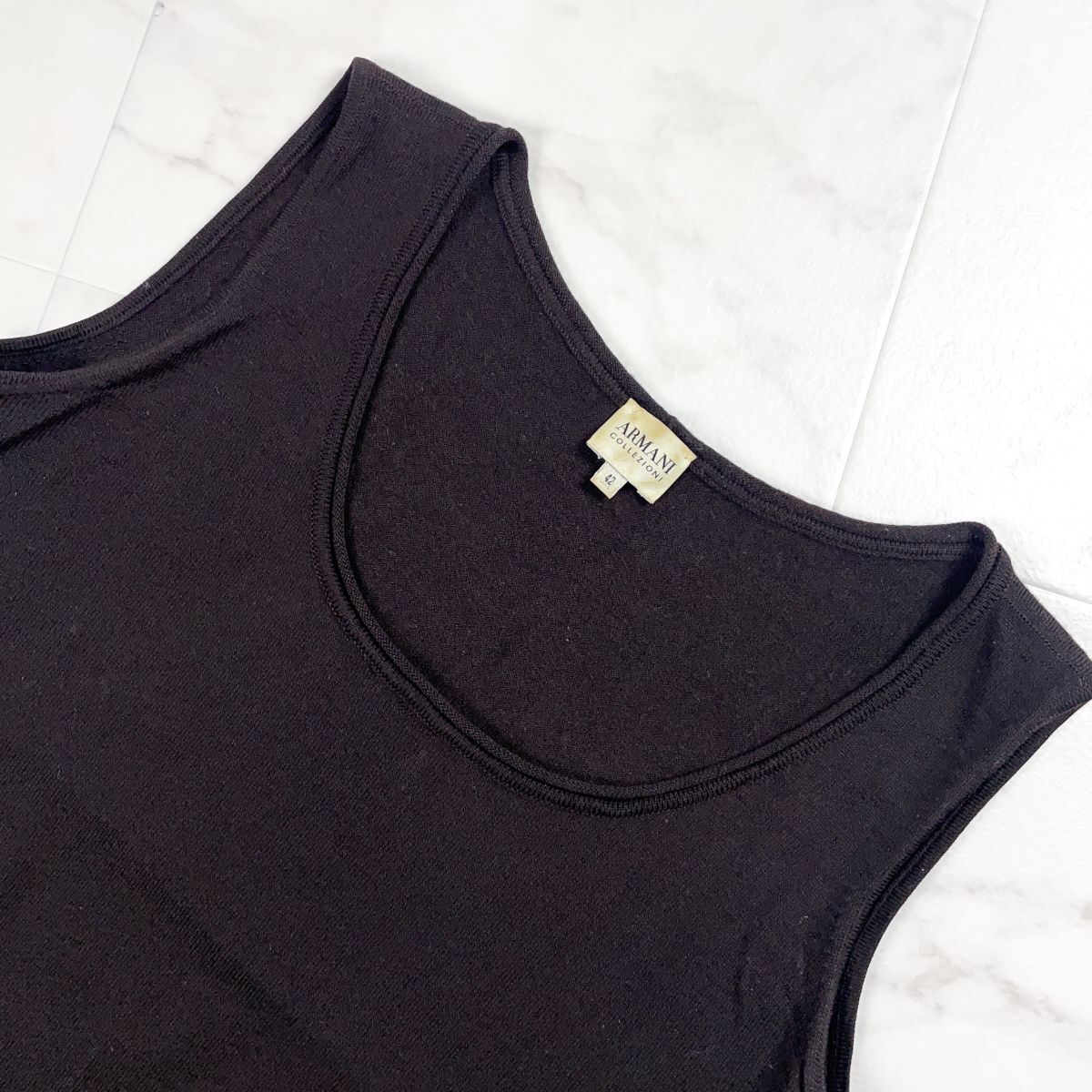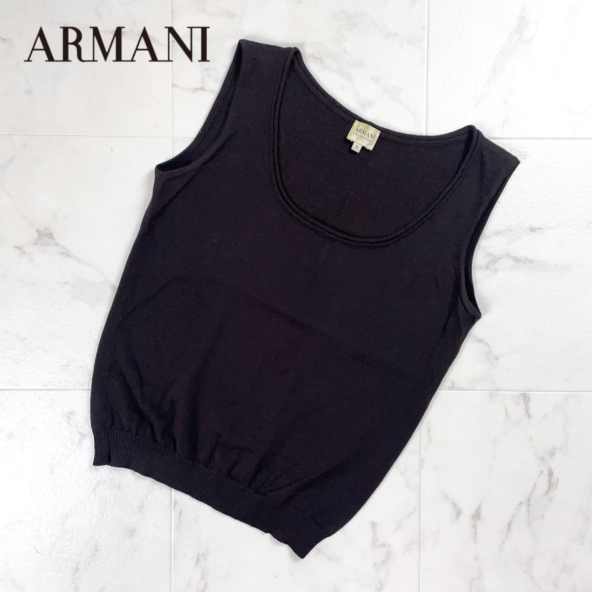 ARMANI COLLEZIONI アルマーニ コレツィオーニ ウールUネックノースリーブニット 袖なしセーター レディース ブラウン 茶色 サイズ42*BD619