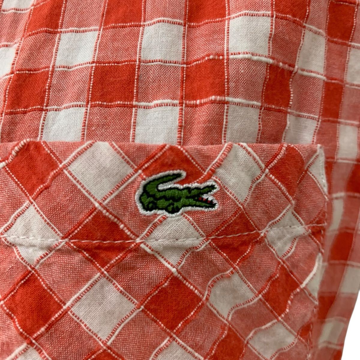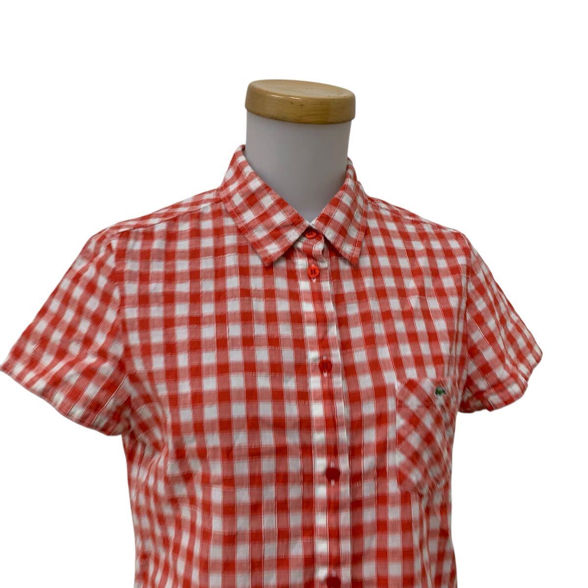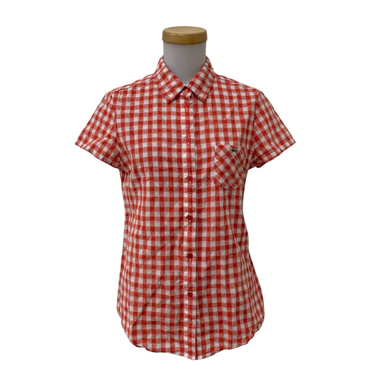 NB301-14 LACOSTE ラコステ 半袖 シャツ ブラウス トップス コットン 100% レッド系 チェック柄 総柄 レディース 38