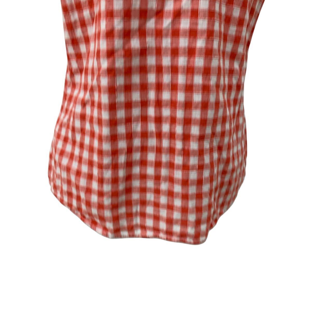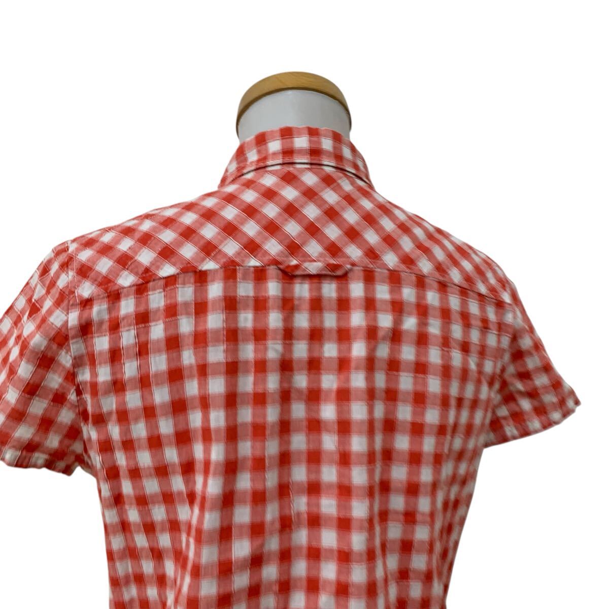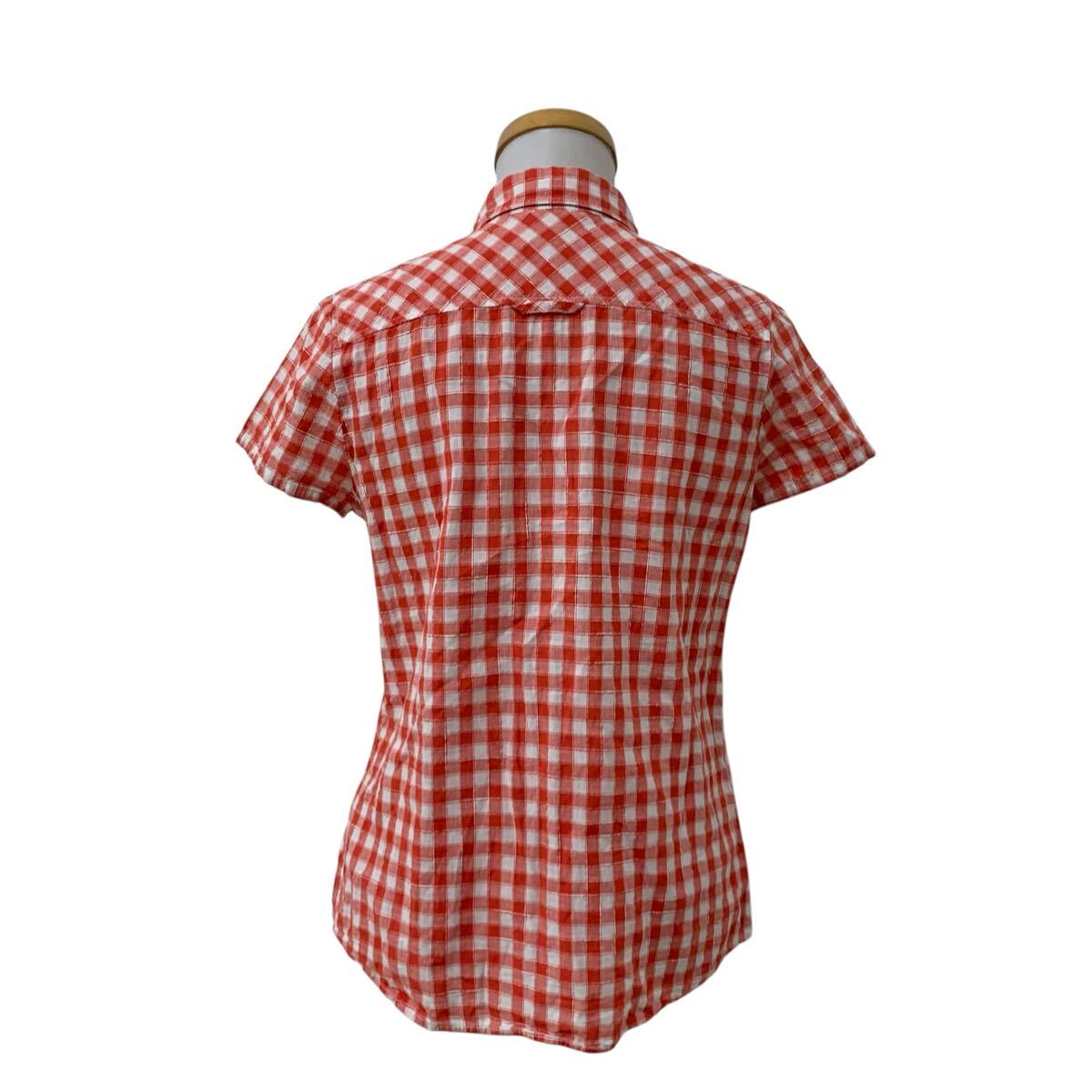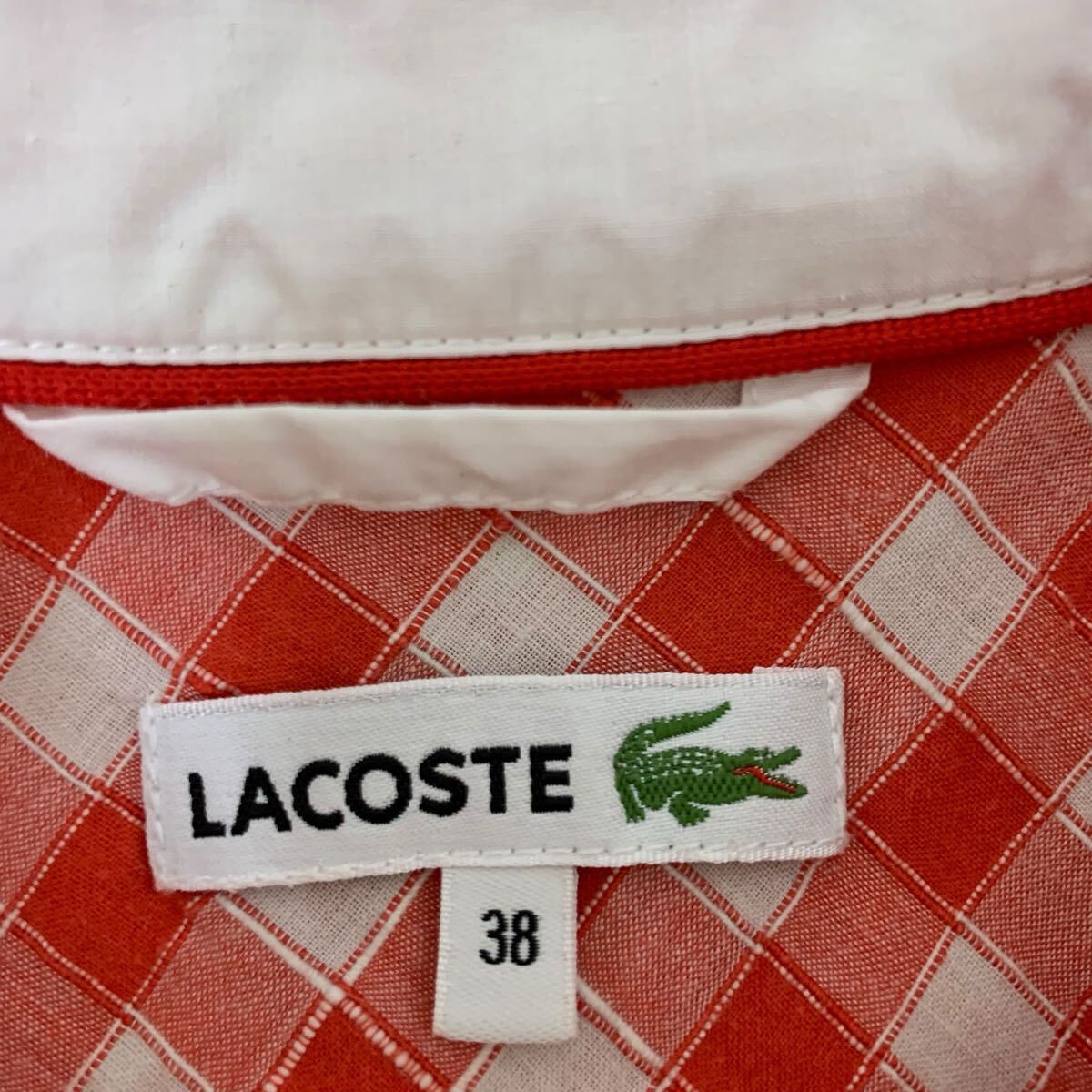 NB301-14 LACOSTE ラコステ 半袖 シャツ ブラウス トップス コットン 100% レッド系 チェック柄 総柄 レディース 38