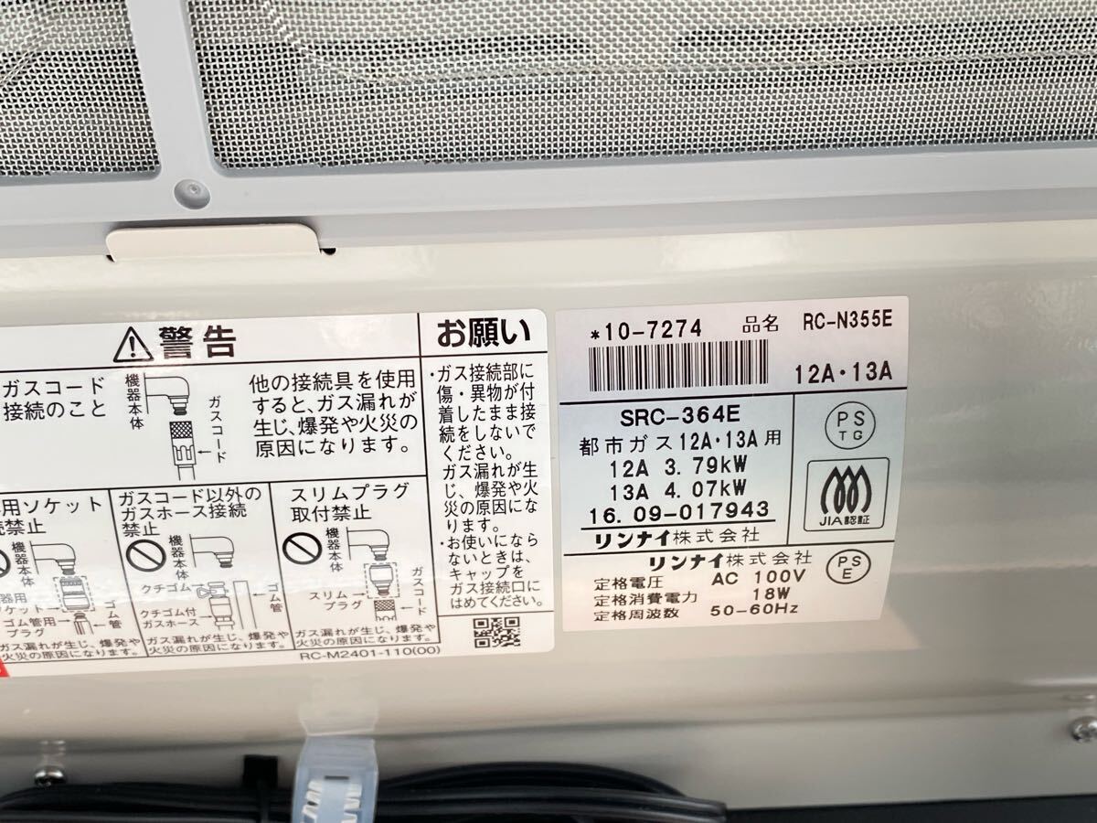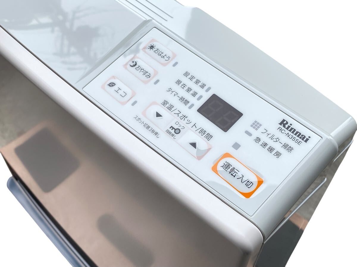 ★美品 Rinnai リンナイ RC-N355E ガスファンヒーター 都市ガス シンプル 12A 13A用 11〜15畳 ホワイト 家庭用 暖房 現状品 ○管理YO372