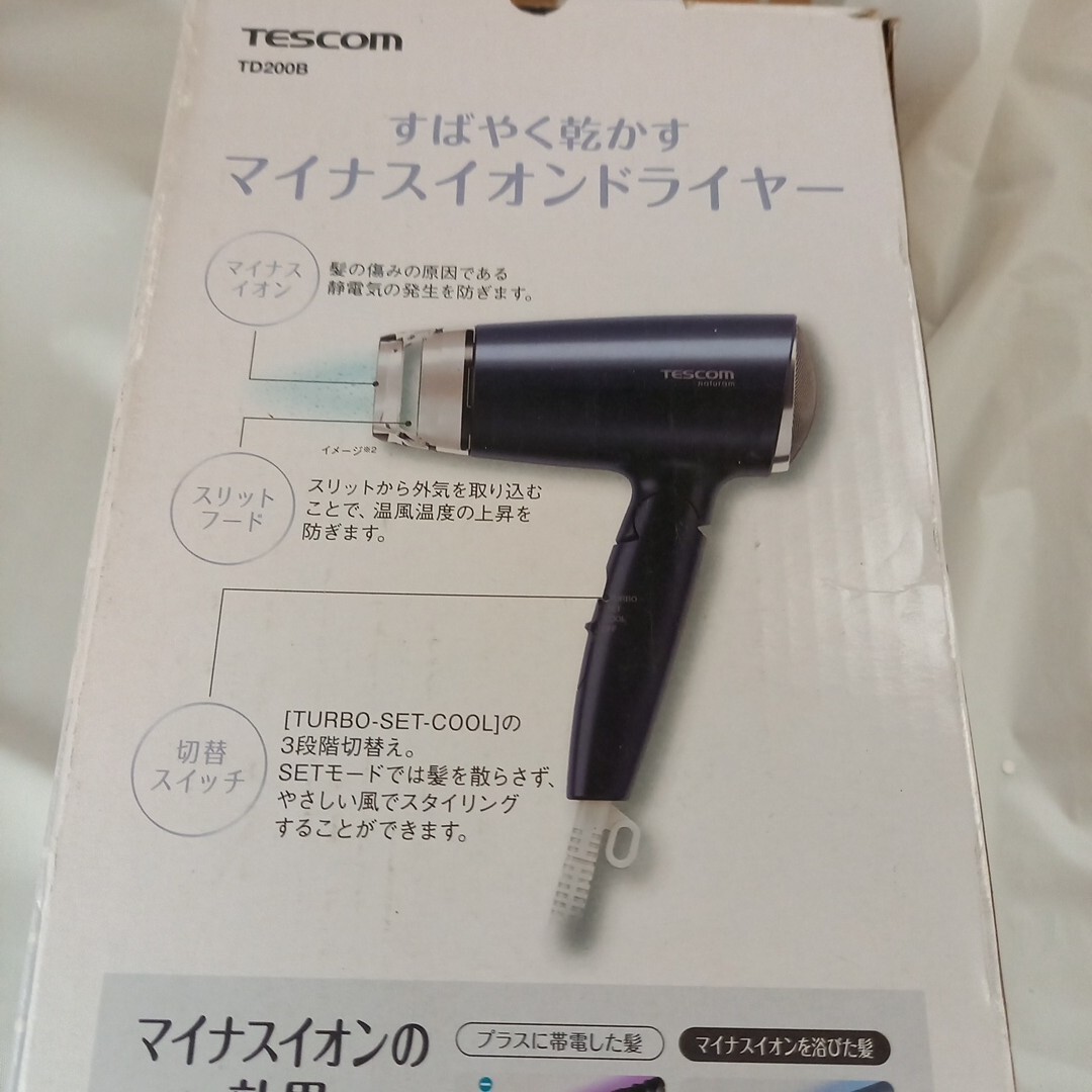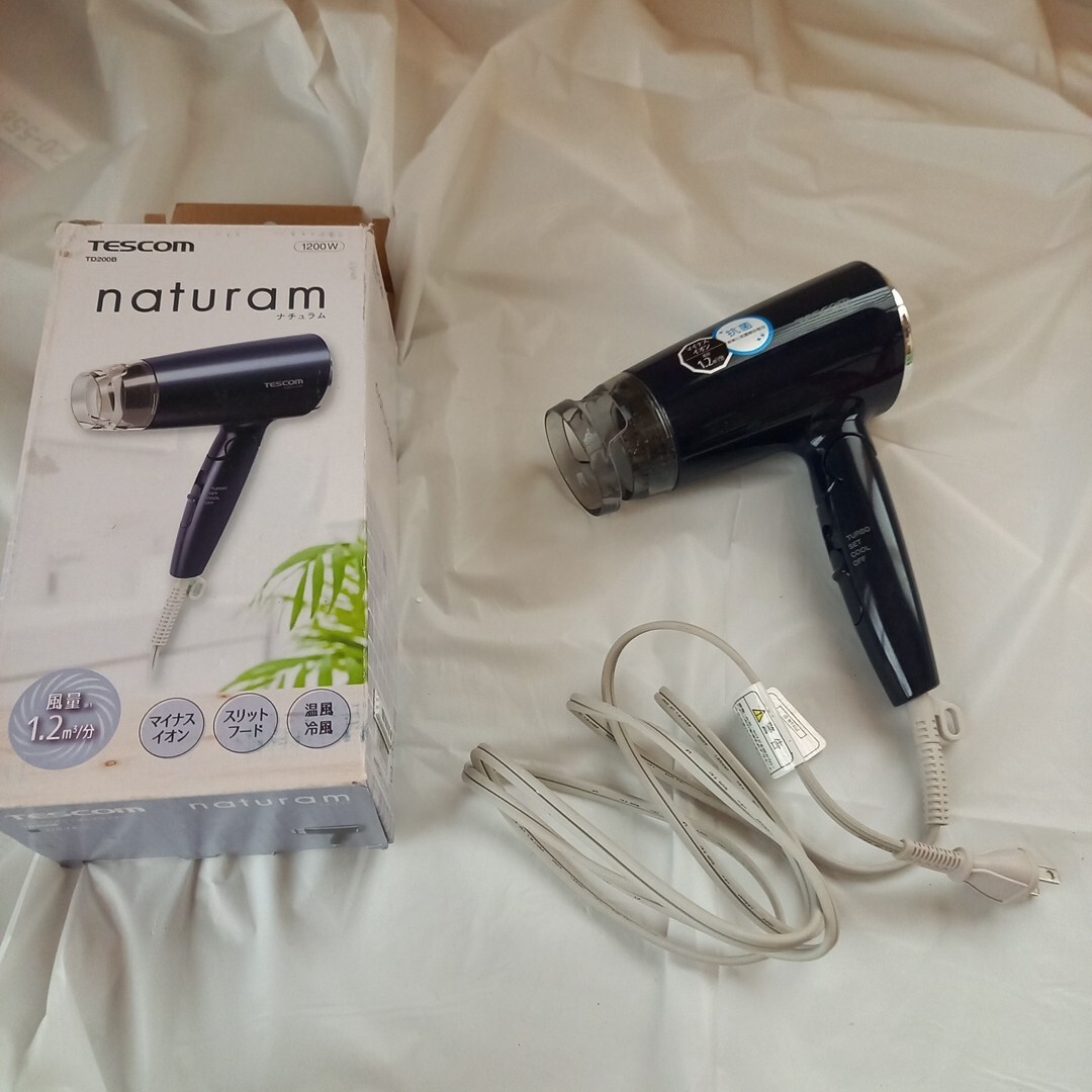 ヘアドライヤー テスコム 稼働品 マイナスイオン 1200w. td200b ナチュラム ドライヤー 美容 ターボ もと箱あり