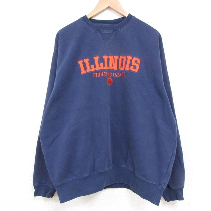 【商品名】 XL★古着 ナイキ NIKE 長袖 スウェット メンズ 00年代 00s イリノイ クルーネック 紺