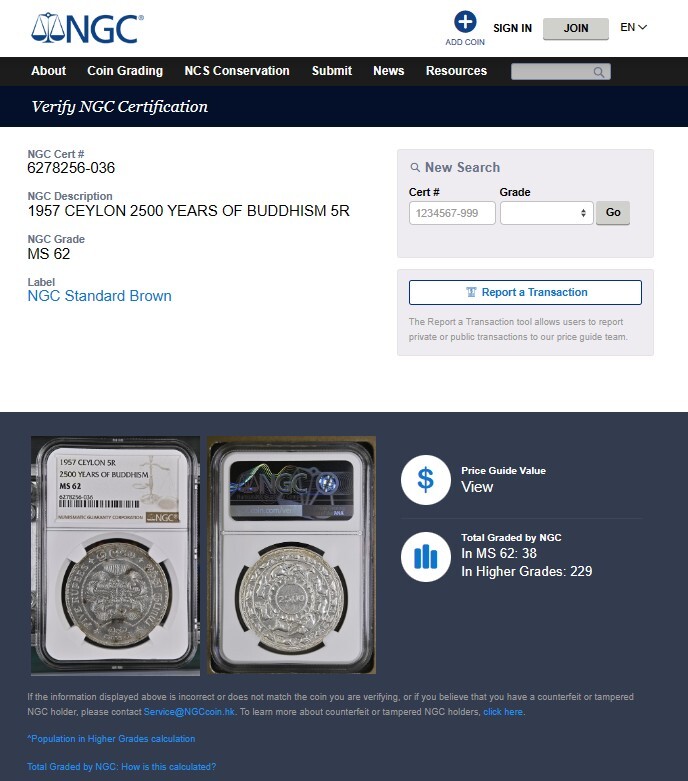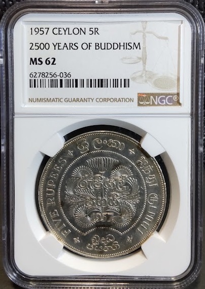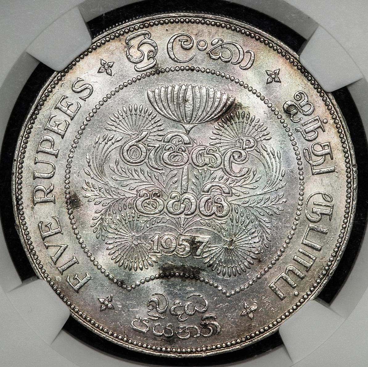 1957年 イギリス領セイロン 仏教2500周年 5ルピー スターリングシルバー 銀貨 MS62