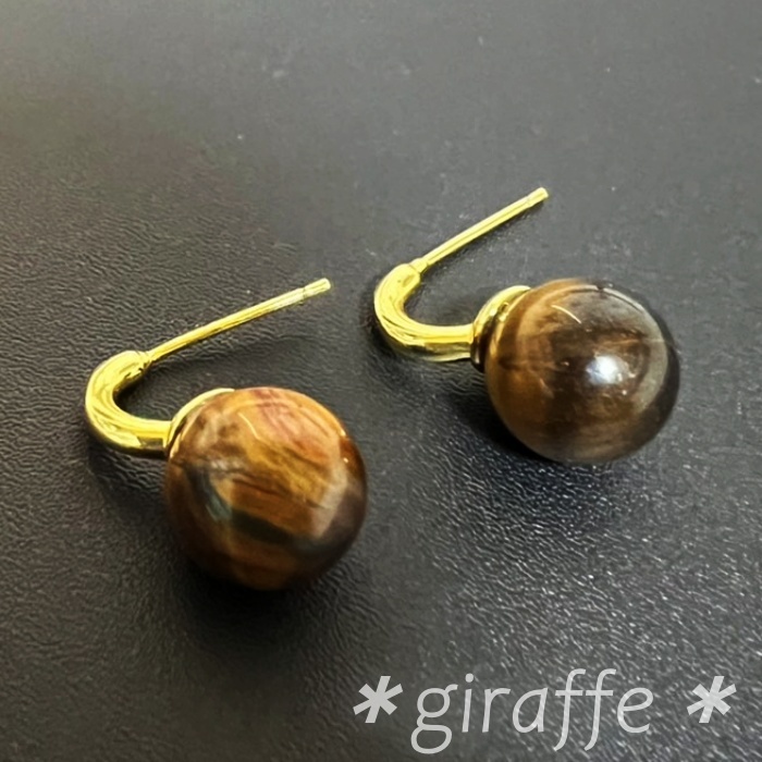 B600 匿名配送 ピアス レディース タイガースアイ 虎目石 s925 ゴールド シンプル ラウンド ブラウン