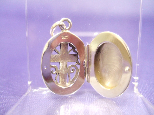 商品名 | 横浜最新 シルバーSILVER925銀魅惑のクロス透かし鏡面仕上げ♪ロケットペンダント楕円4.4g 巾約16×縦20ミリ メンズレディース |