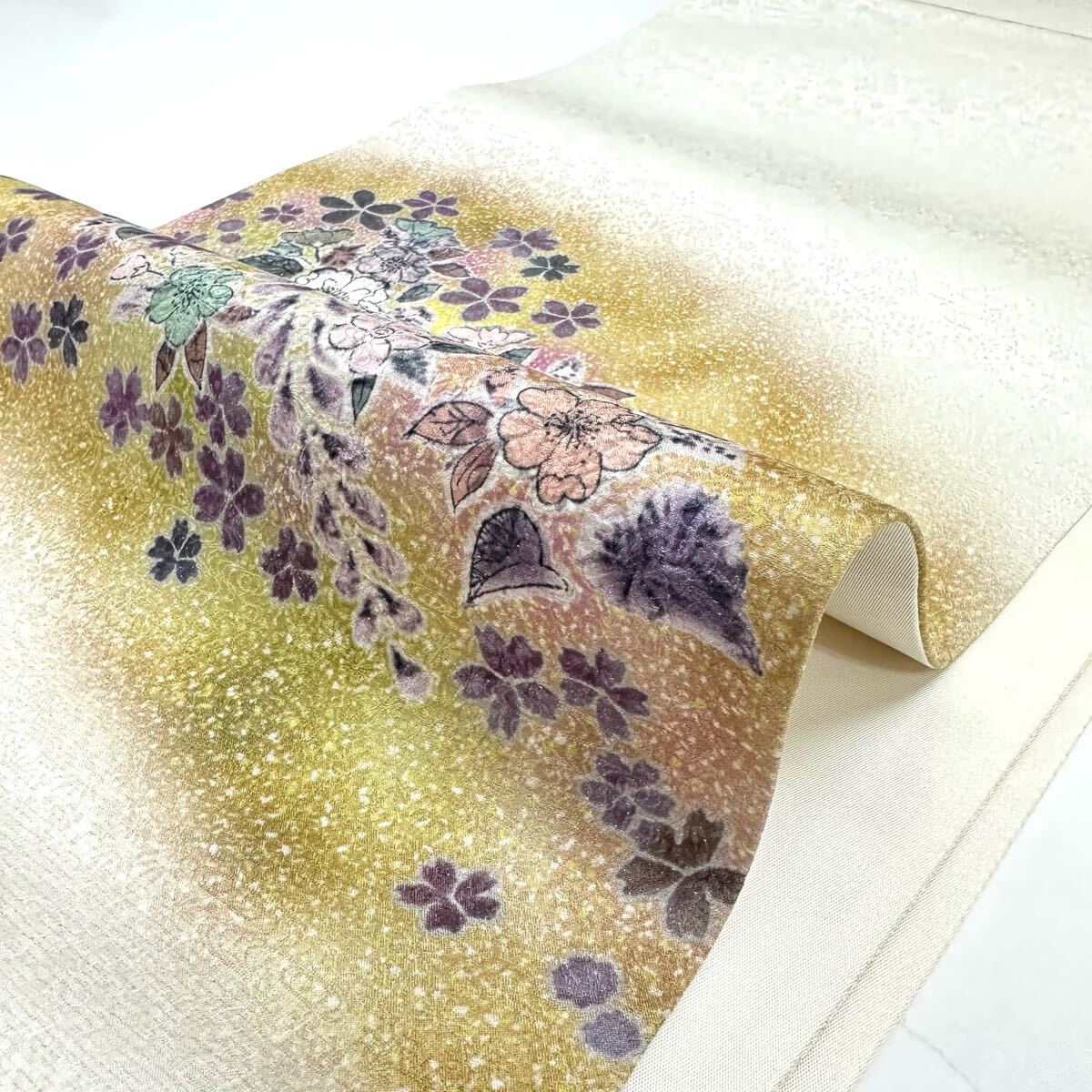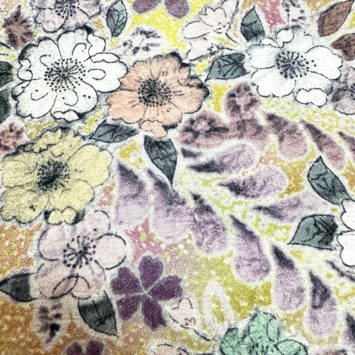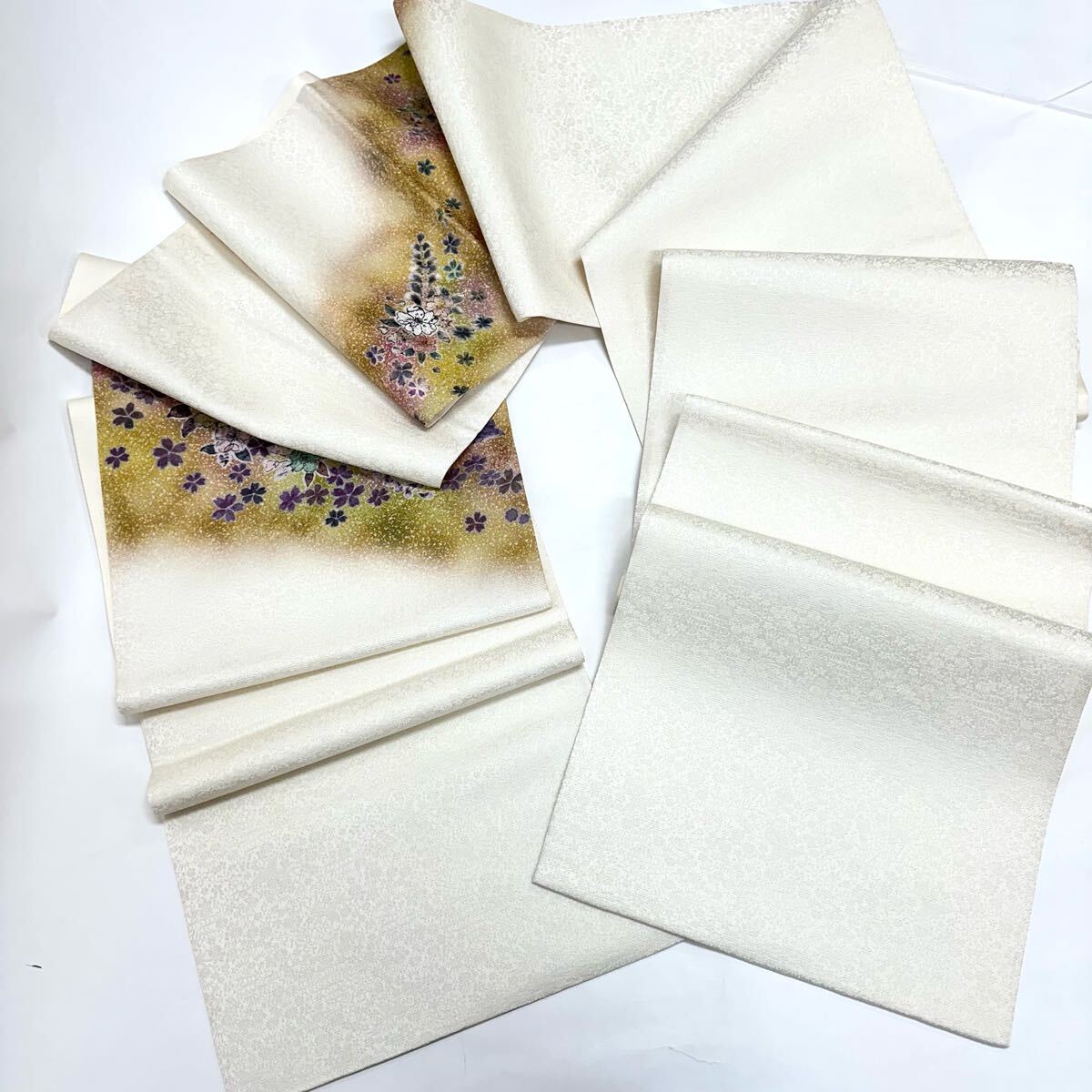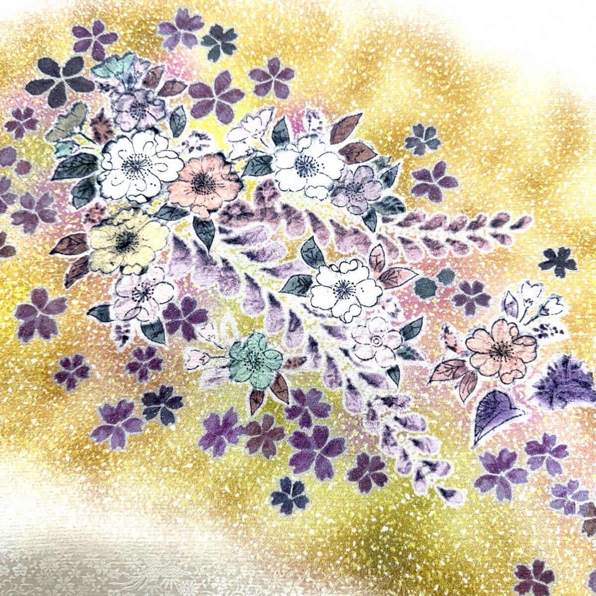 【七福】c536 逸品 高級品 正絹 袋帯 太鼓柄 草花 辻が花 銀通し 豪華