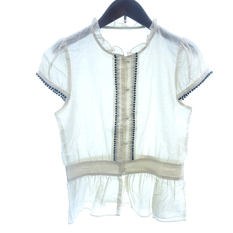 スーナウーナ Sunauna シャツ ブラウス フリルスタンドカラー ペプラム フレンチスリーブ 38 M ベージュ /AU レディース
