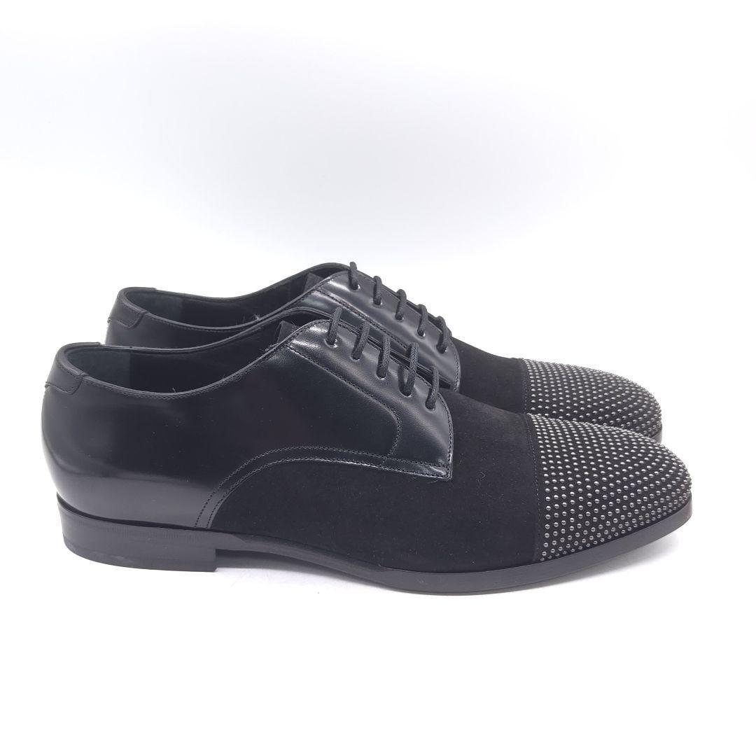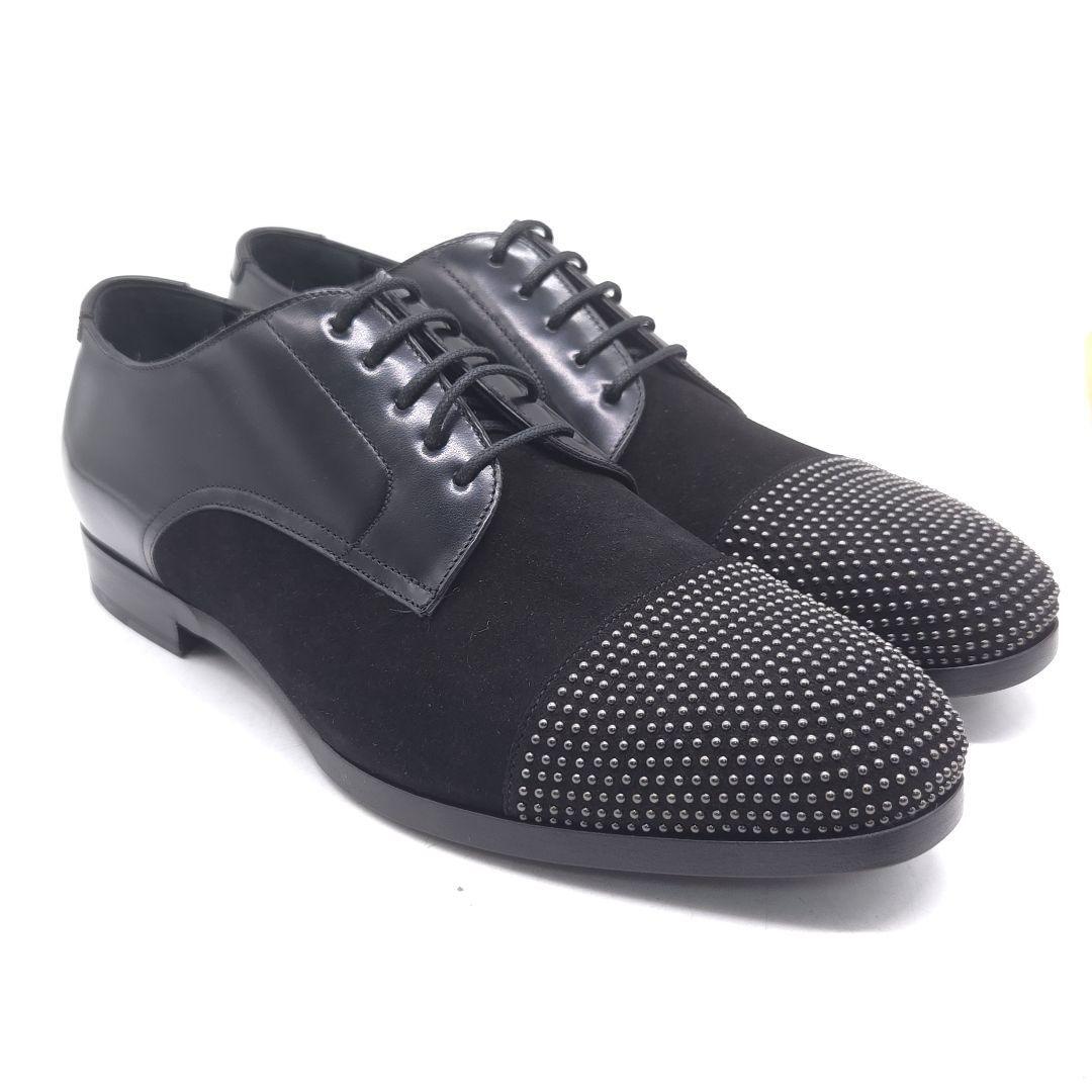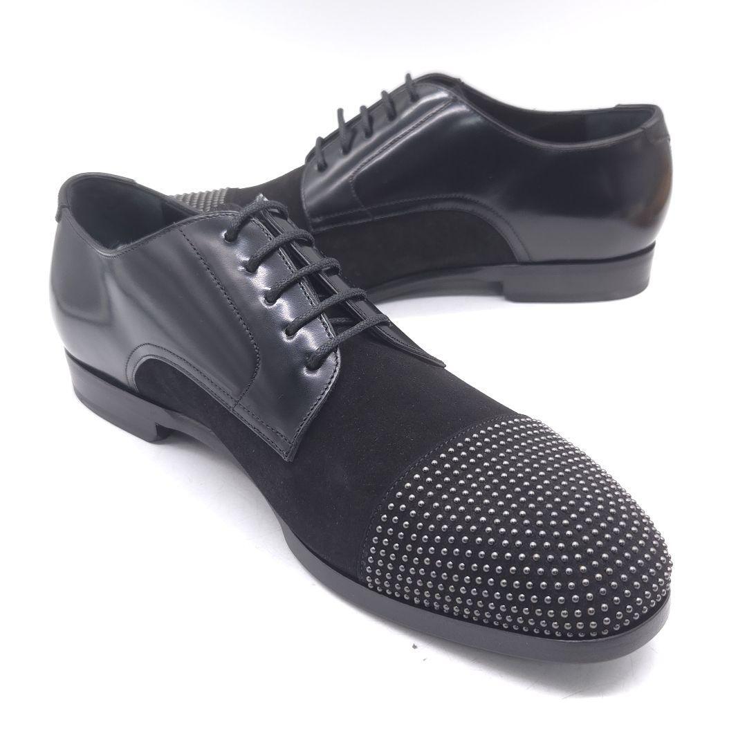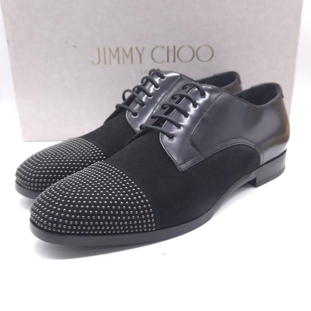 未使用 JIMMY CHOO PENN ジミーチュウ パテント レザーシューズ レースアップシューズ 41.5 約 26.5cm ブラック スタッズ 高級靴 正規品 新品 未使用 自宅保管品