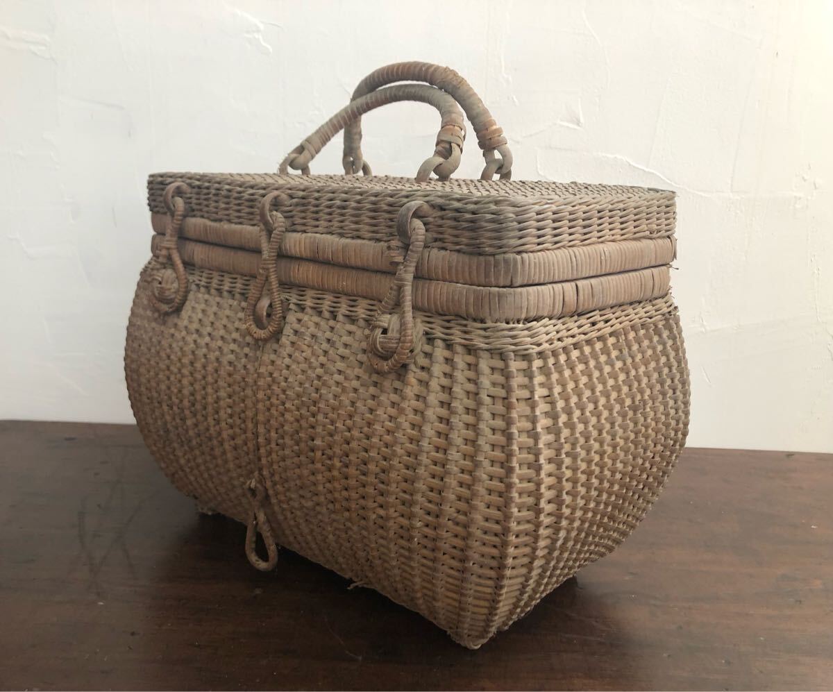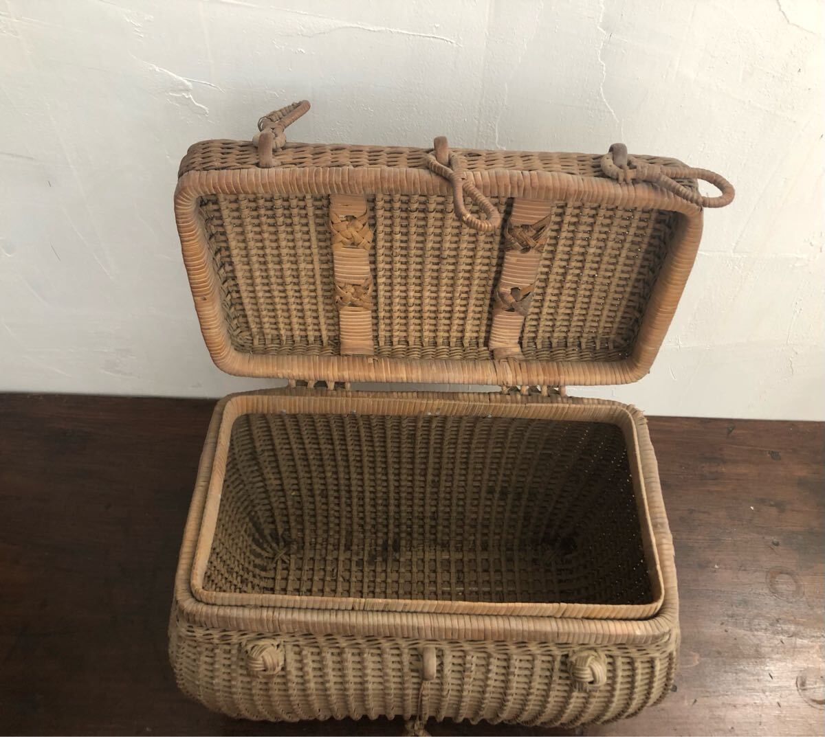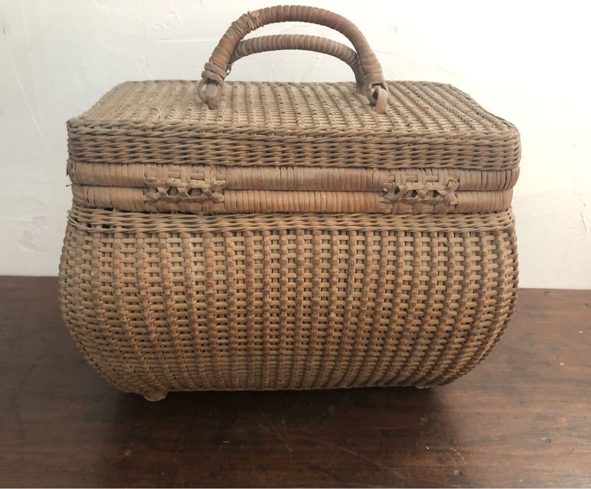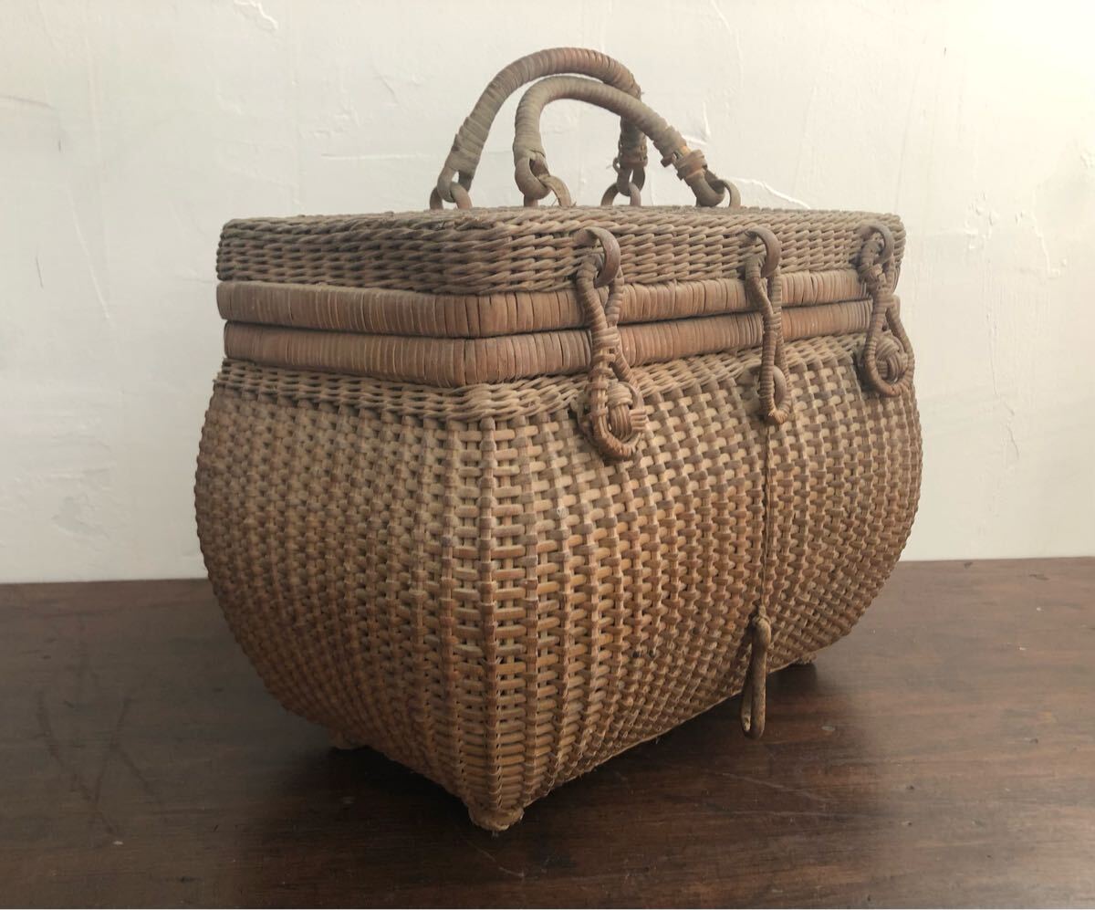 商品名 : 昭和レトロ バスケット籐かご/ 籠/ラタン/小物入れ/収納/ アンティーク/ビンテージ/ 古道具