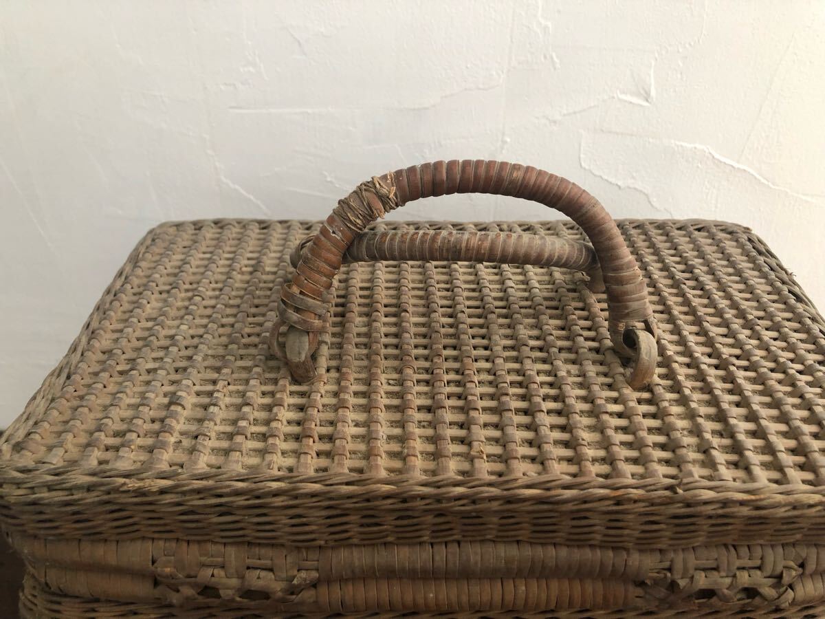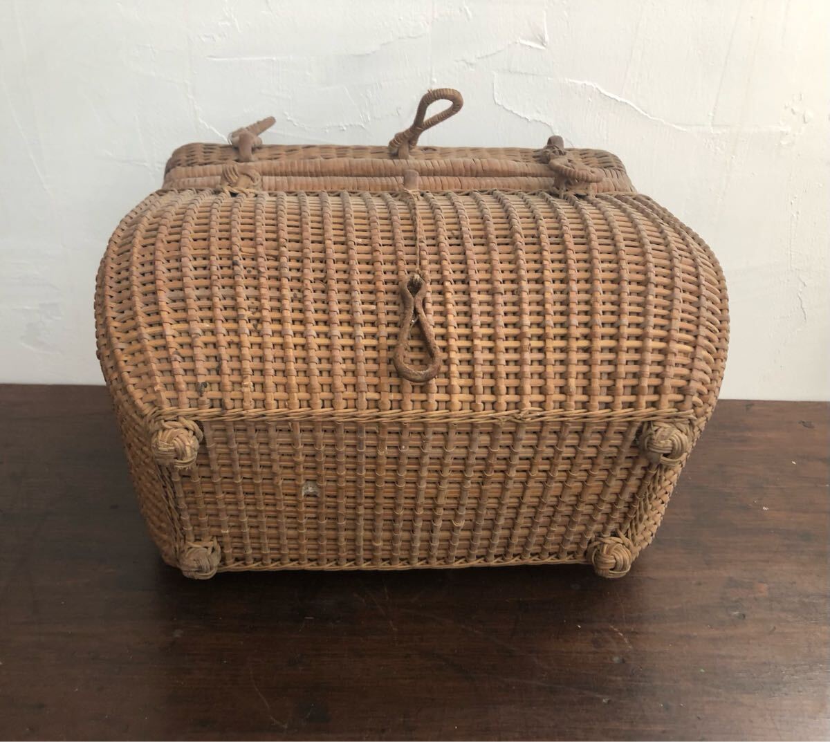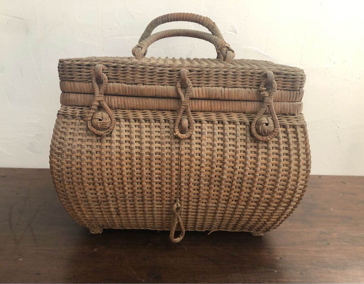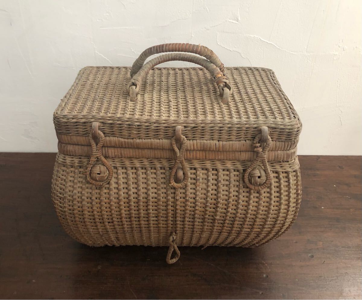 商品名 : 昭和レトロ バスケット籐かご/ 籠/ラタン/小物入れ/収納/ アンティーク/ビンテージ/ 古道具