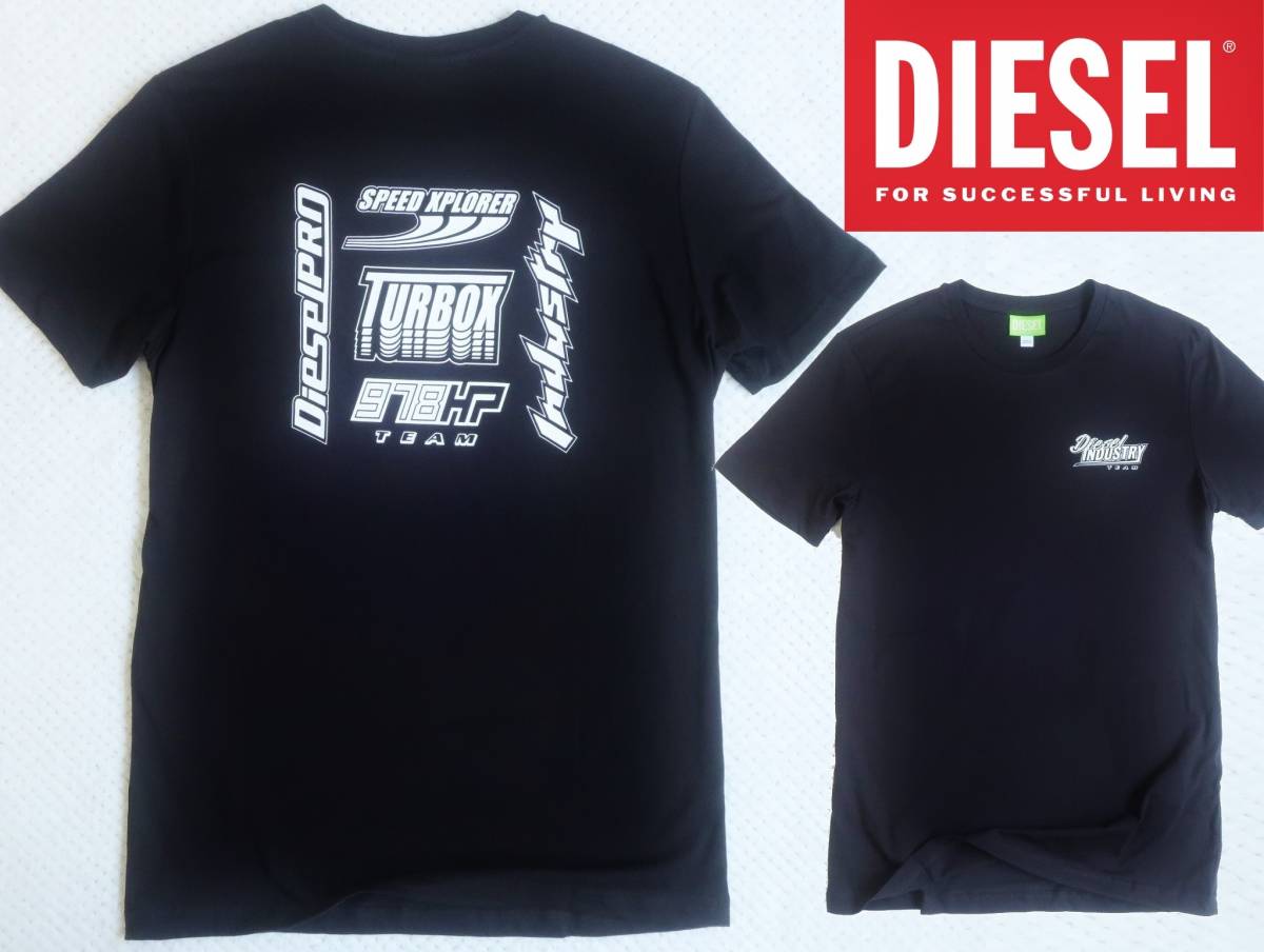 新品★ディーゼル DIESEL★ブラック グラフィック Tシャツ★ホワイト フロント&バック ロゴ プリント★チームT 黒 白 XL★898