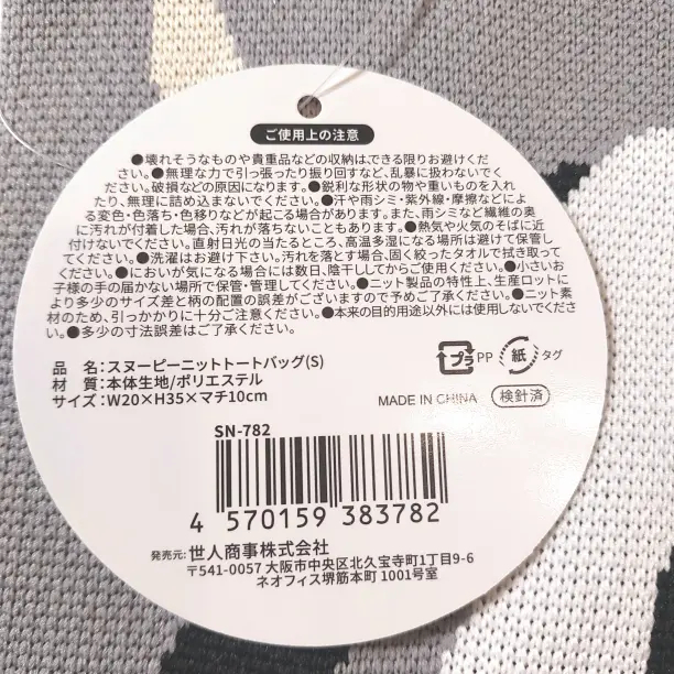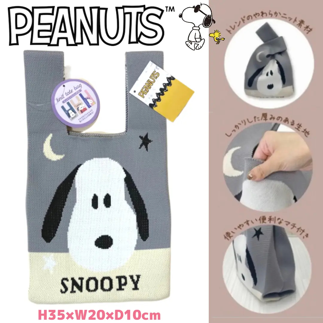 【新品未使用】スヌーピー ニットトートバッグ グレー Sサイズ PEANUTS SNOOPY となります。(タグ付き)