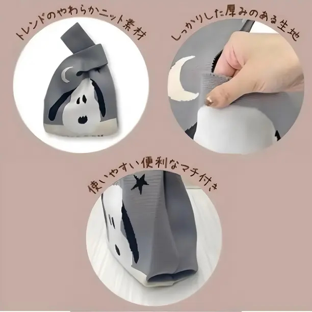 柔らかい厚手のニット生地となり、マチが広げられるので見た目以上の収納力!