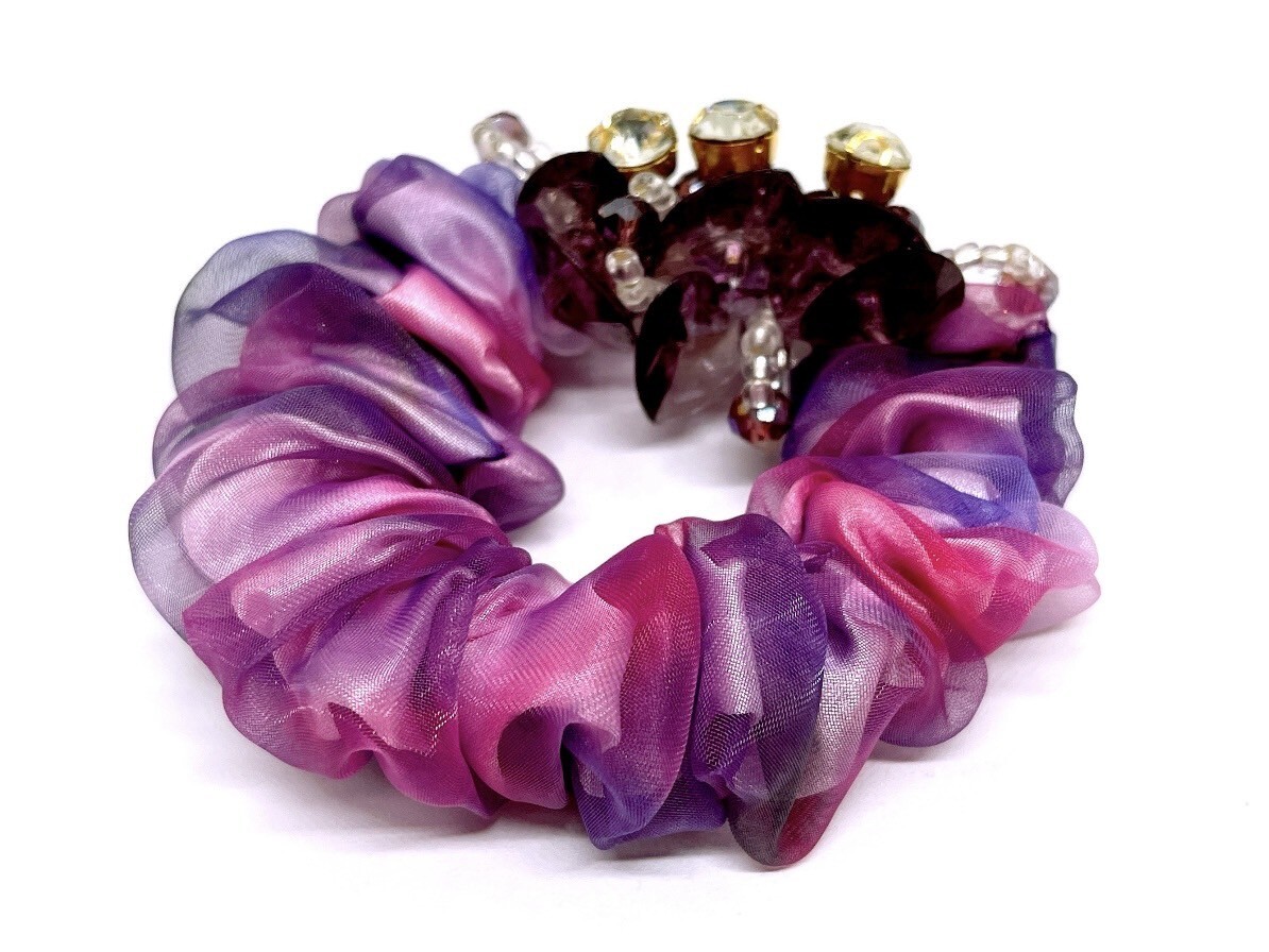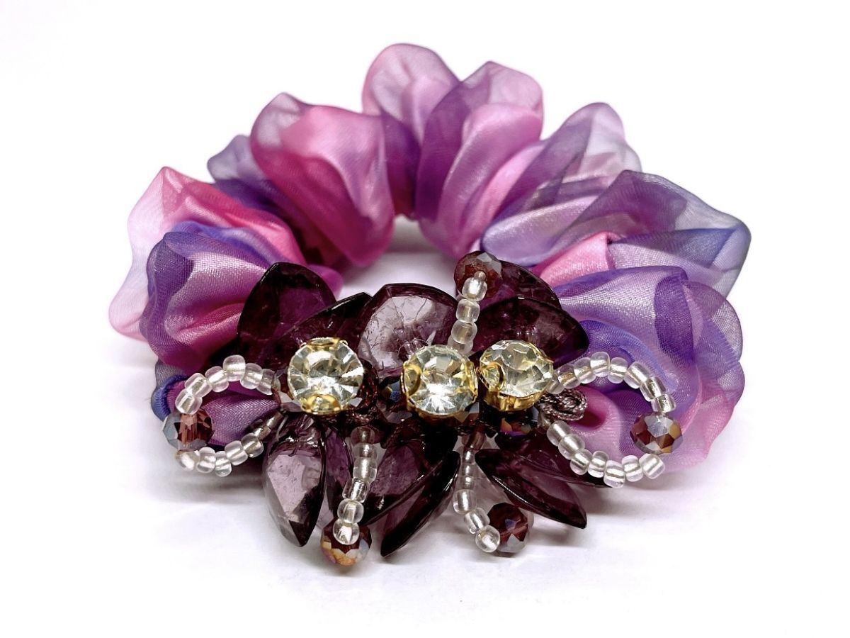 送料140円!同梱OK!取置2週間。(*^^☆彡*ハンドメイドシュシュ*ヘアゴム*お花*フラワー*ビーズ*デザイン*A80*即決!