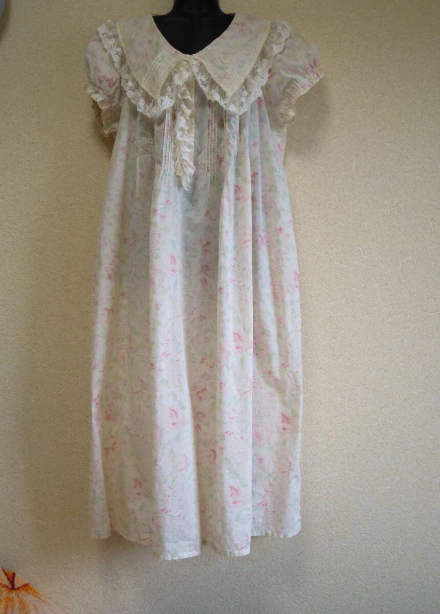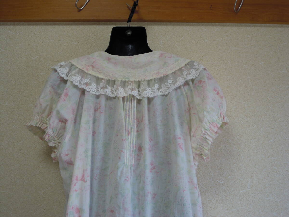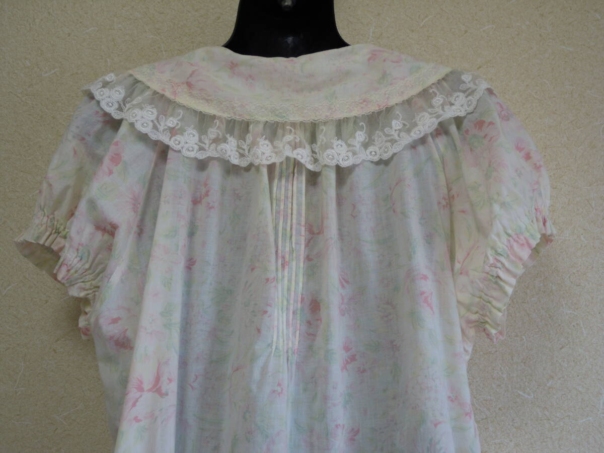 今だけ送料無料★高級 ワコール 日本製 M-L 綿 姫 ネグリジェ レース 大きな襟 前開き 裾広がり マタニティ 淡い色の 花模様 タンス在庫