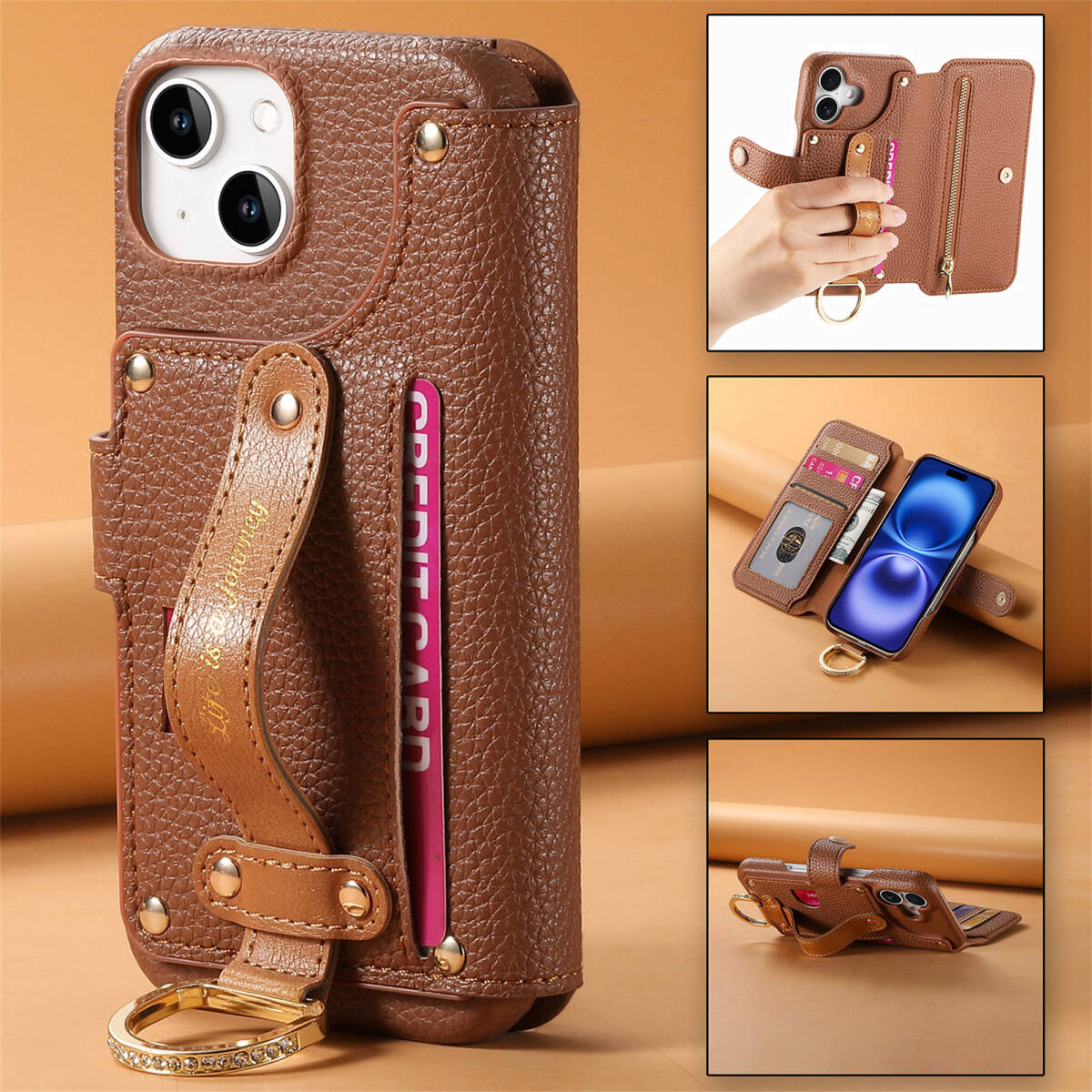 ブラウン iPhone15用ケース 手帳型 RFID磁気防止 スキミング防止 カードポケット 落ち着いた色 横置き機能 高級PU 気質 全面保護