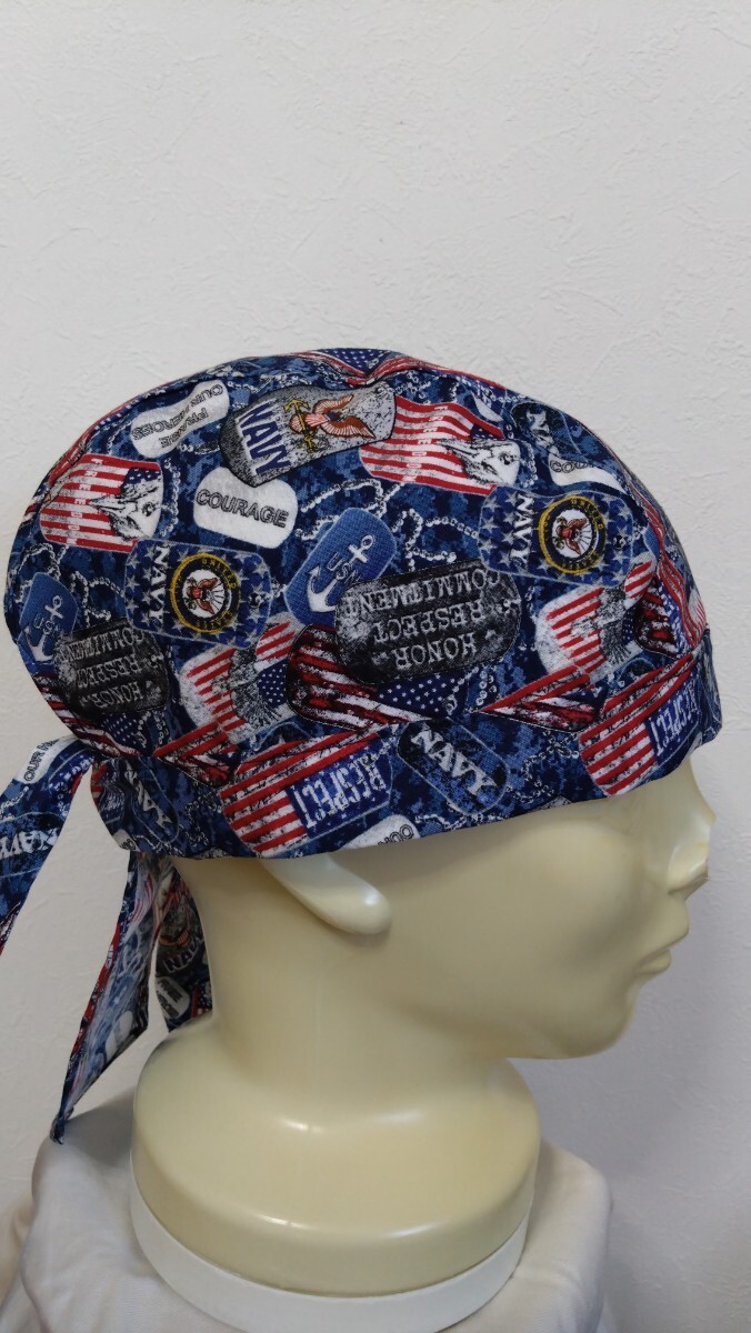 ★バンダナキャップ★ハンドメイド USA イカリ アンカー ネイビー