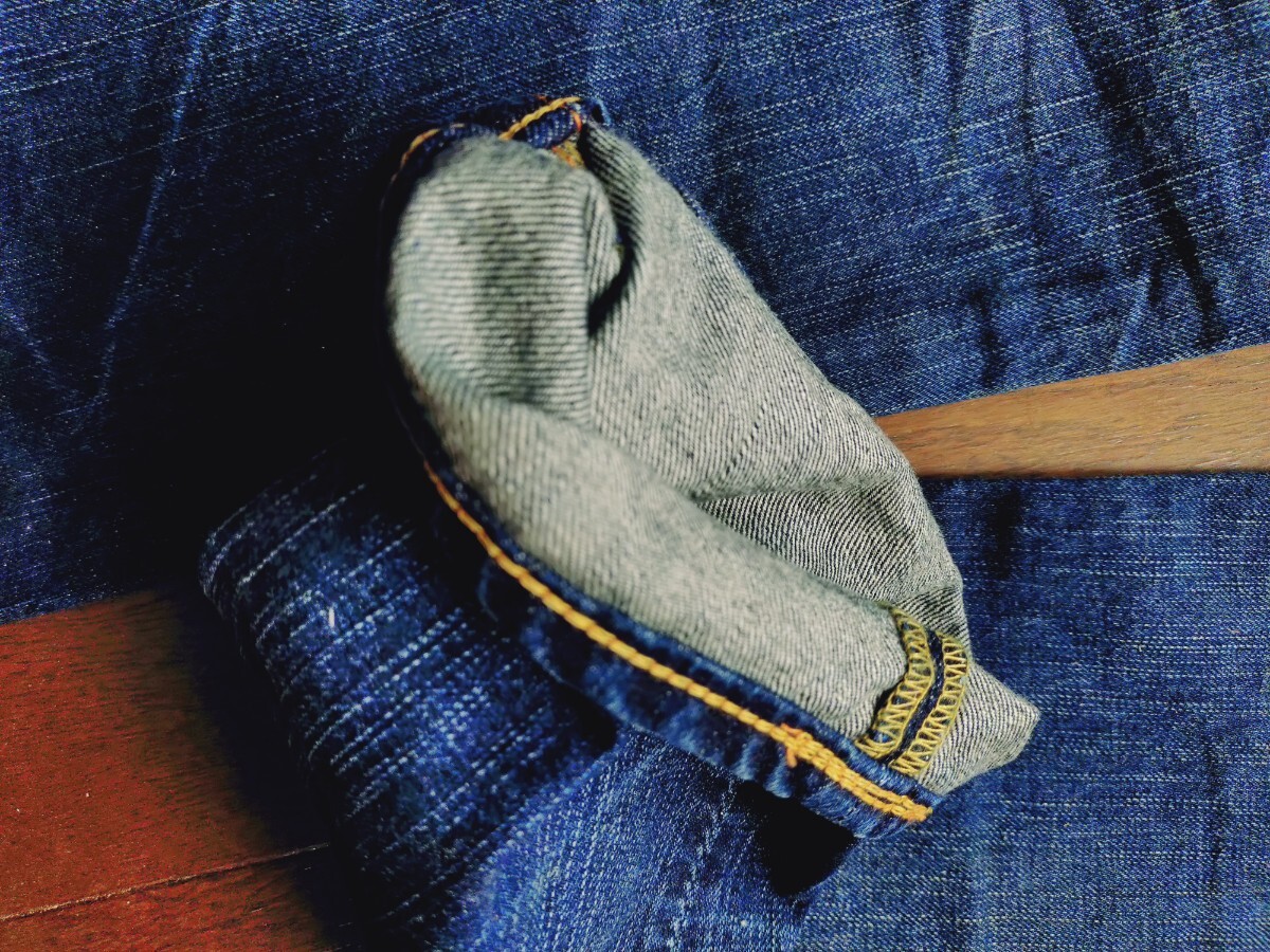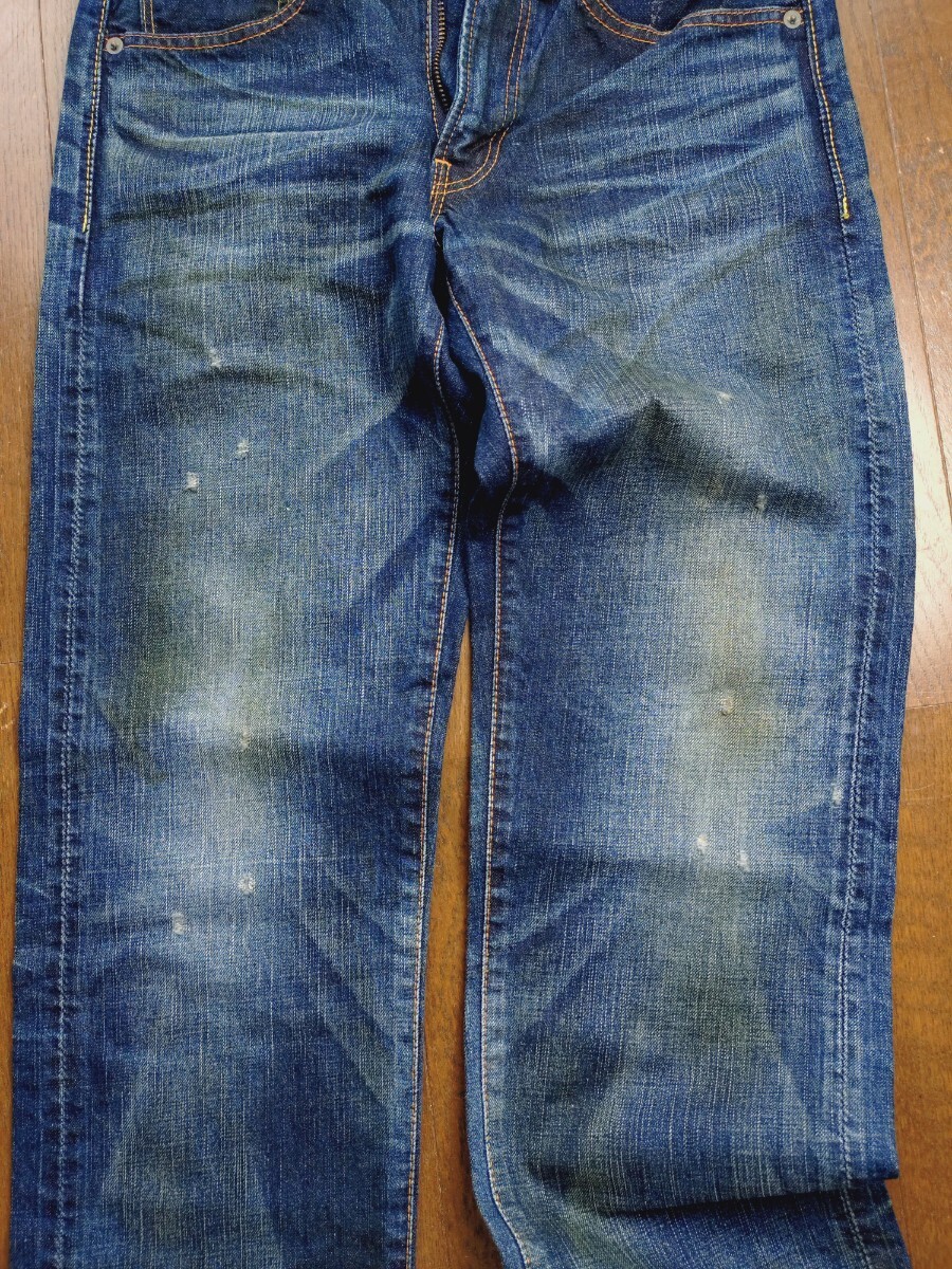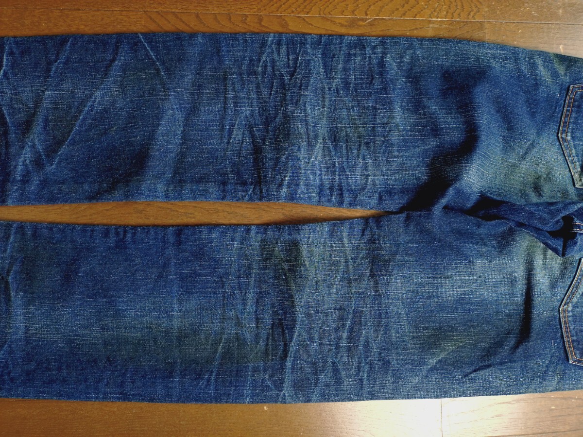 ユーズド加工が施され、ヒゲが素敵なジーンズです。試し履き程度です。