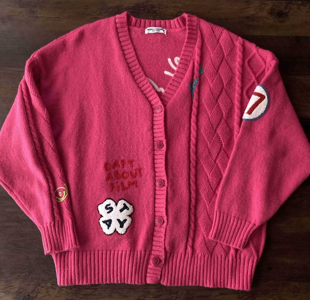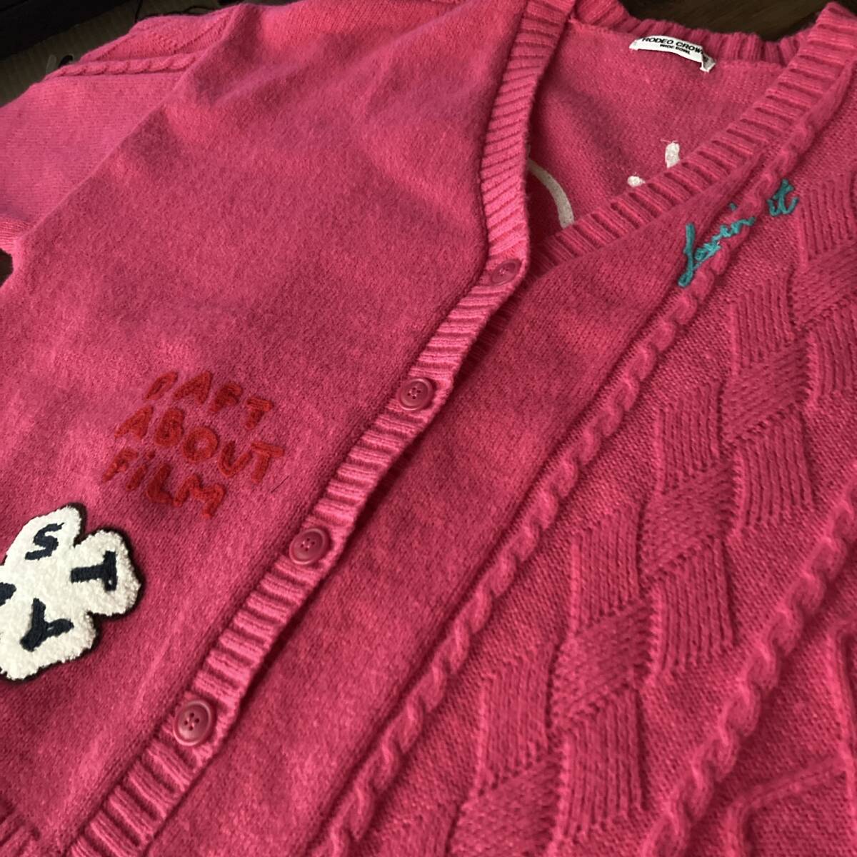 RODEO CROWNS WIDE BOWL EMB MOTIFSケーブルカーディガン ピンク フリーサイズ ロデオクラウンズ 美品