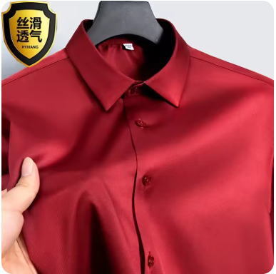 S-6XL 白シャツメンズ春と秋のビジネスドレス非アイロン韓国フィット抗シワ無地シャツ 色:  Wine red サイズ: 5XL-45-(95-105KG)