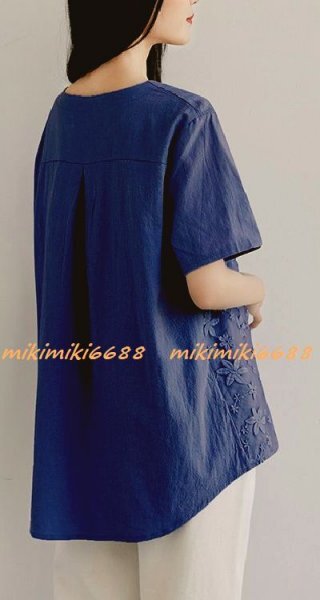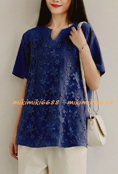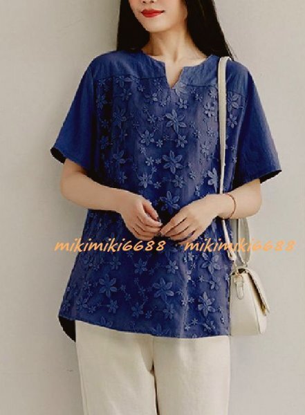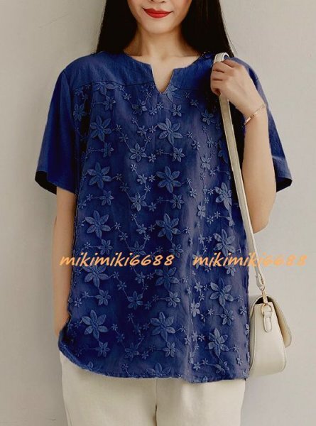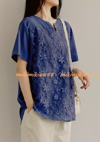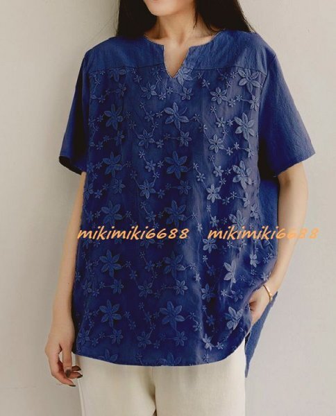 前後丈違いふんわり花刺繍入りの半袖チュニックです。