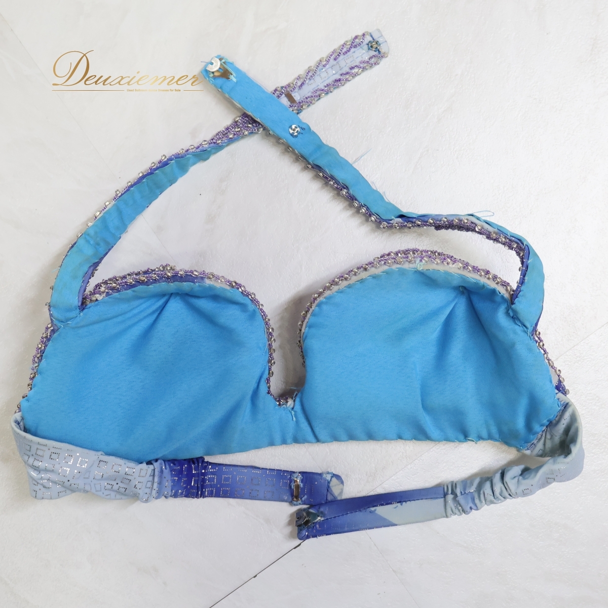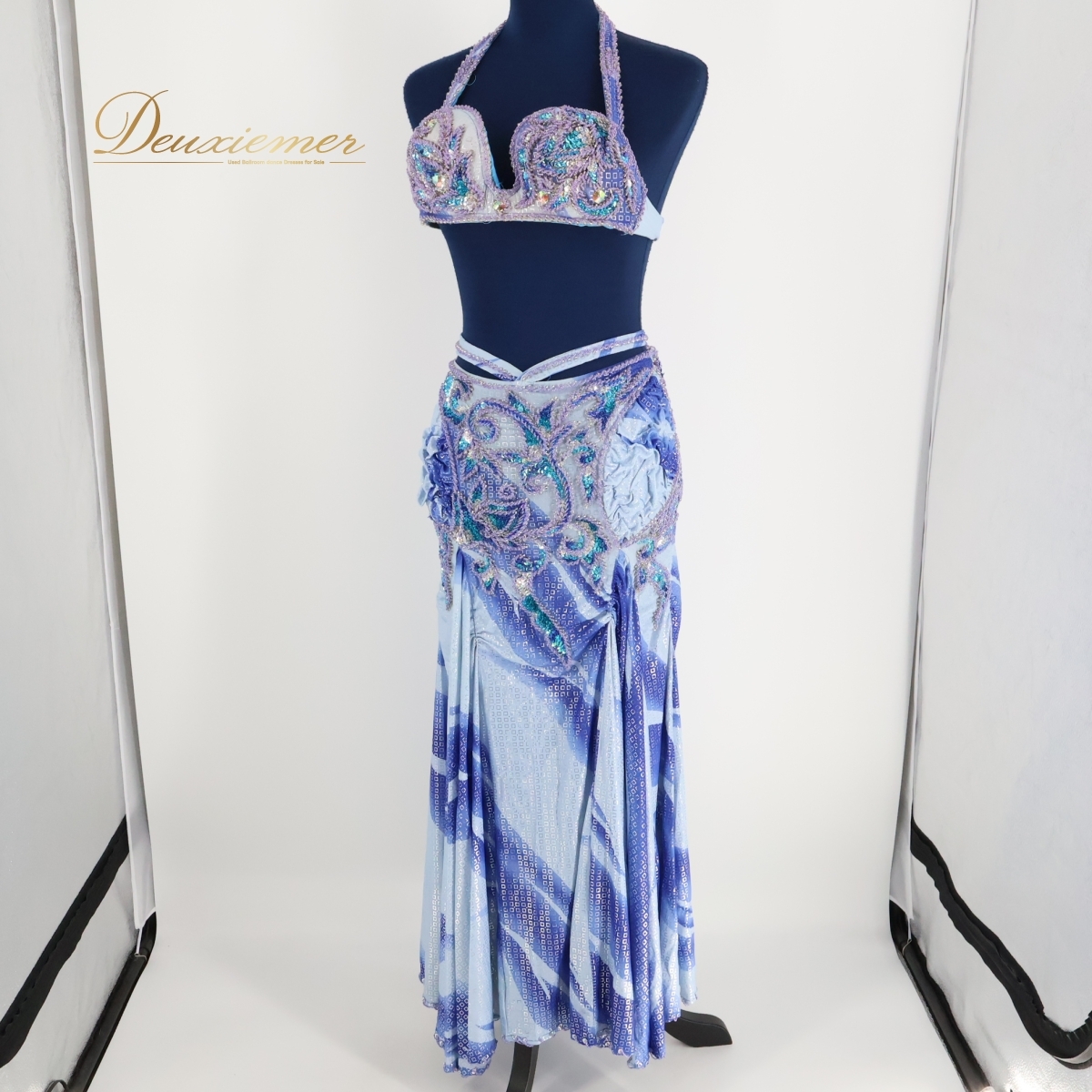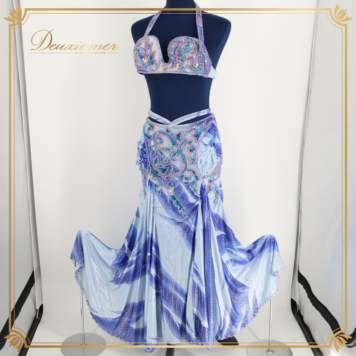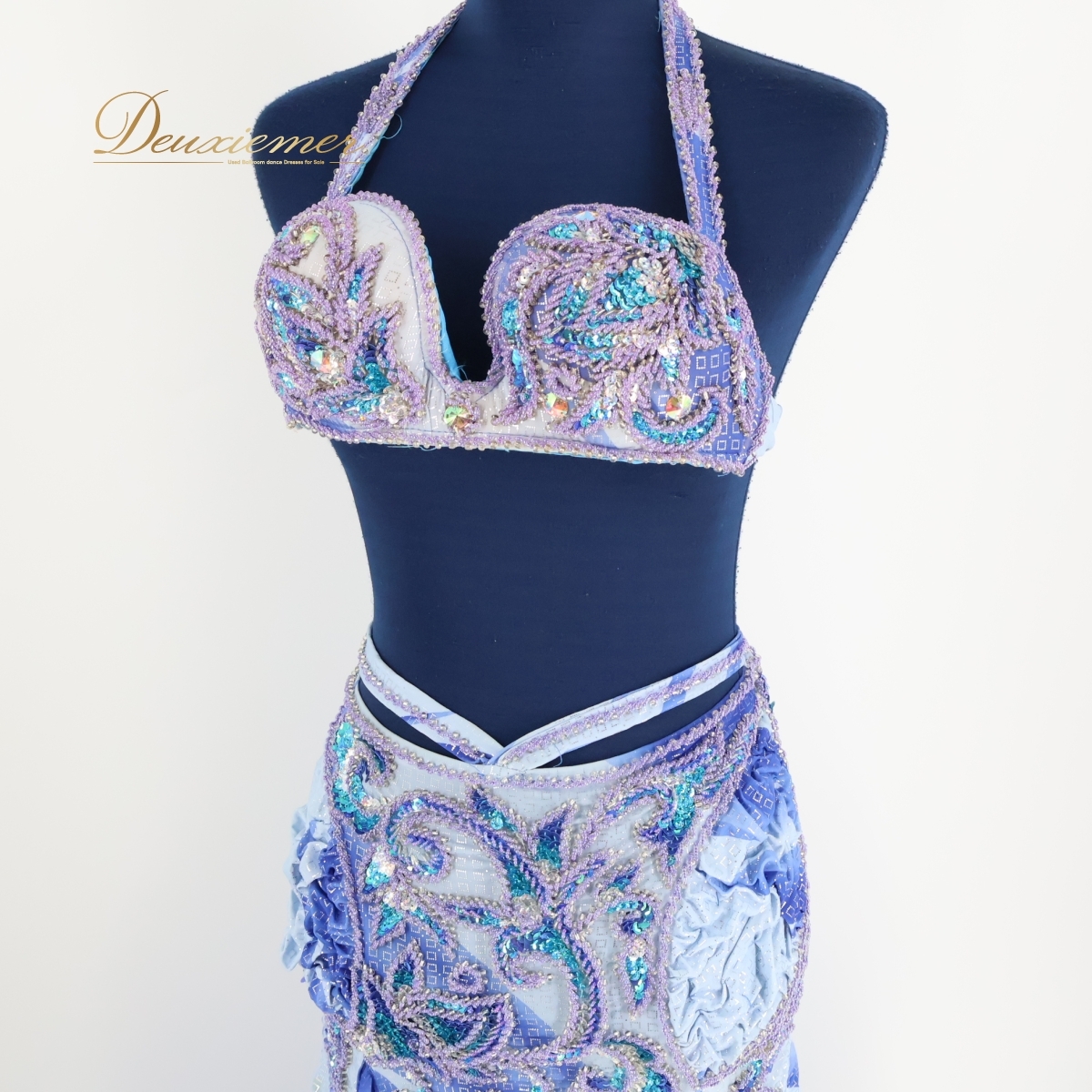 商品説明 | 【商品名】ベリーダンス オリエンタル衣装 トップス 【サイズ】 平置き実測:パッド両端長さ約30cm、ネックストラップ右約30cm 左約31cm、 アンダーストラップ全長約74cm、アンダーストラップ(ブラ部分を除く)右約21cm 左約22cm ※実測の為、多少の誤差はご容赦願います。 【仕様】 ・アンダーストラップ伸縮性有り スカート 【サイズ】 平置き実測:総丈約87cm、ウエスト約32cm~ ※実測の為、多少の誤差はご容赦願います。 【仕様】 ・ウエストゴム、ファスナー仕様 ・伸縮性有り ・スリット無し ------------------------------------ 【ポイント】 ▽爽やかな青×水色 ▽模様がオシャレで綺麗な衣装 ▽トップス スカート セット ------------------------------------ 【撮影時使用トルソー:女性用トルソー9号(一般的に使用されるサイズです)】 トルソーサイズ詳細 肩幅約37cm、バスト約88cm、ウエスト約66cm、ヒップ約89cm |