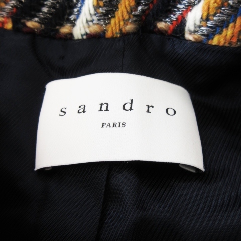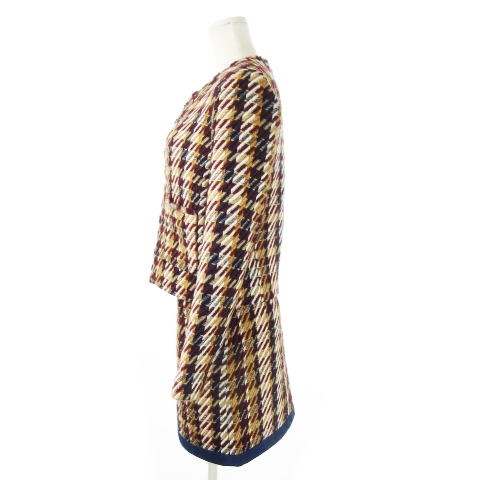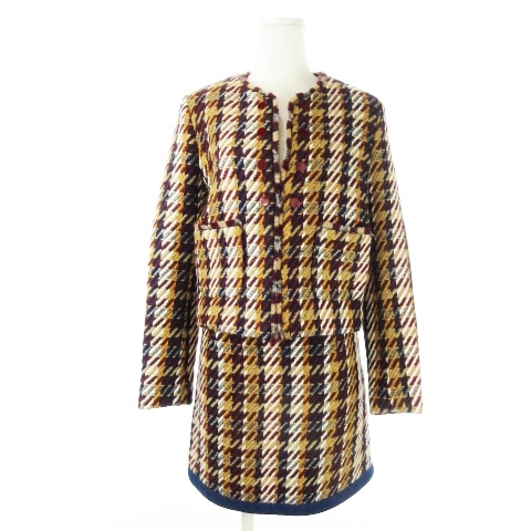 サンドロ sandro セットアップ スーツ ツイード ノーカラージャケット ミニスカート 千鳥 チェック 36 1 S 赤 レッド ボルドー