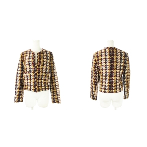 【実寸サイズ】ジャケット 肩幅:37cm ジャケット 身幅:43.5cm ジャケット 袖丈:57cm ジャケット 着丈:47cm スカート ウエスト:62cm スカート ヒップ:-cm スカート丈:43cm