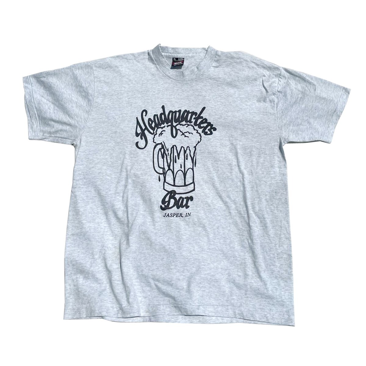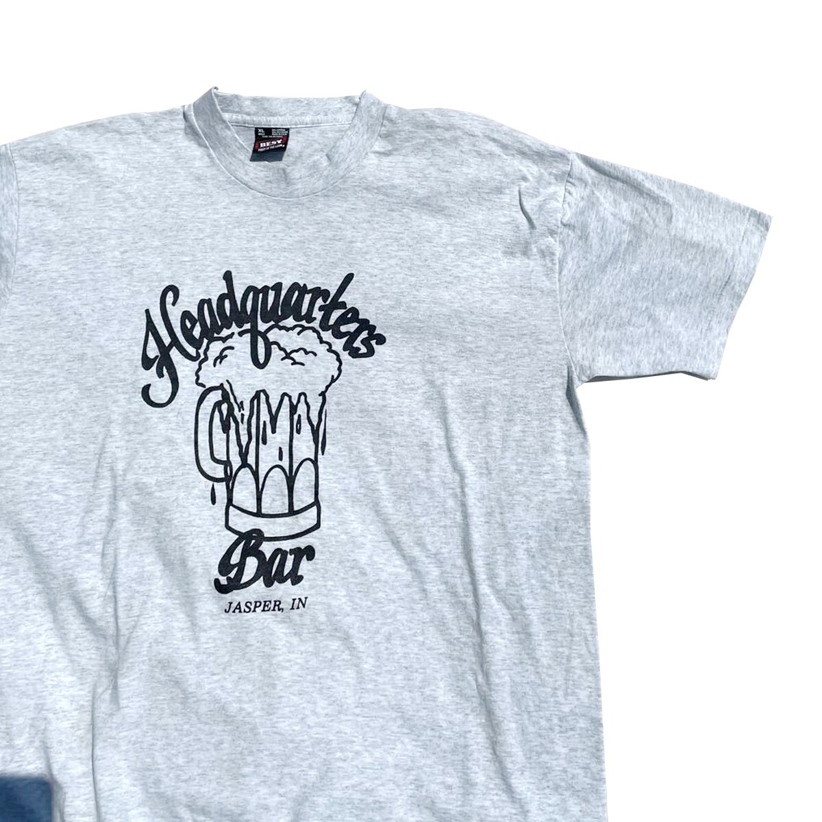 好デザイン! 90s USA製 FRUIT OF THE ROOM ヴィンテージ Headquarters Bar ビール プリント 半袖 Tシャツ グレー 灰色 黒 XL メンズ 希少