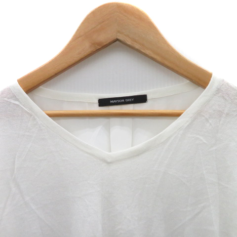 メイソングレイ MAYSON GREY ニット カットソー 半袖 Vネック 切替 シースルー 2 オフホワイト /YK42 レディース