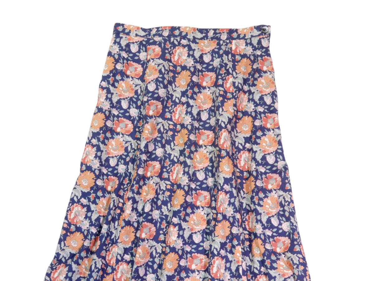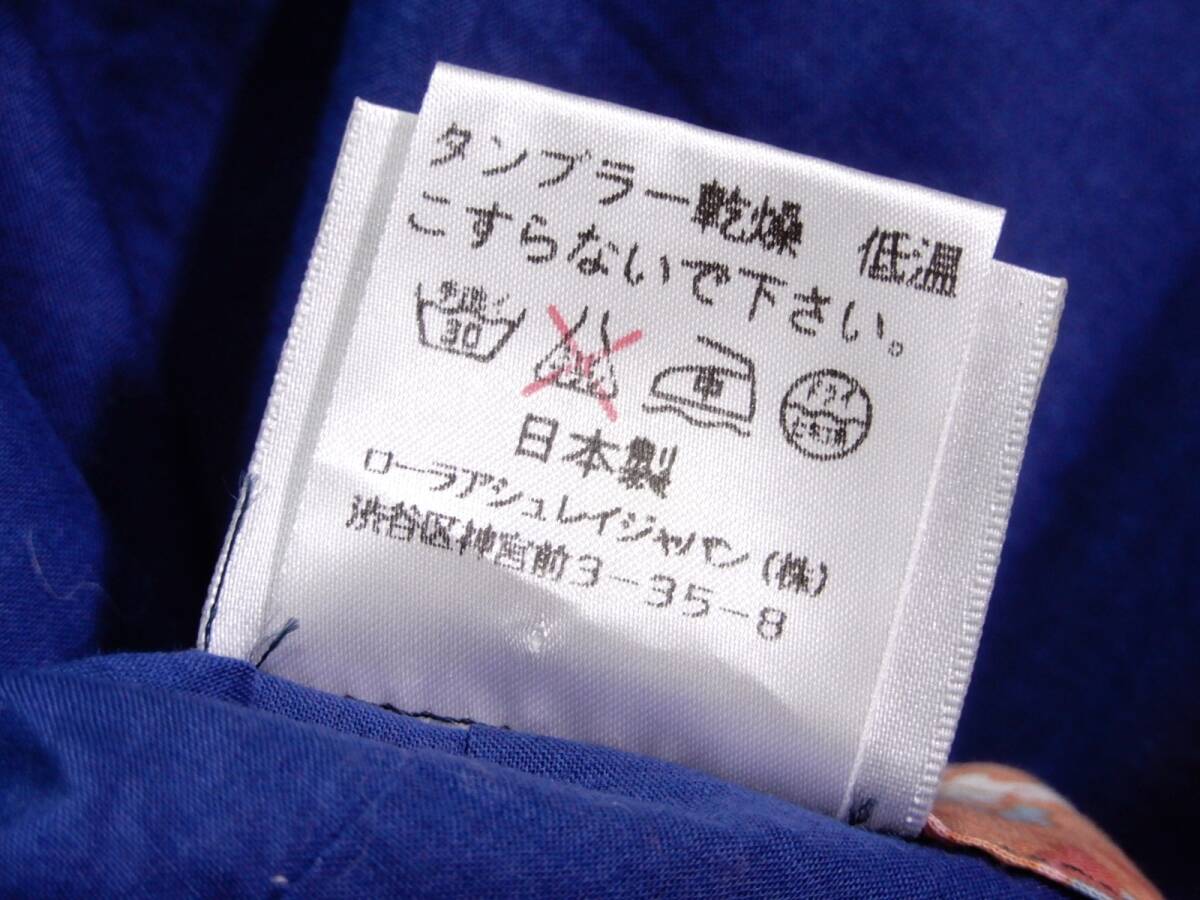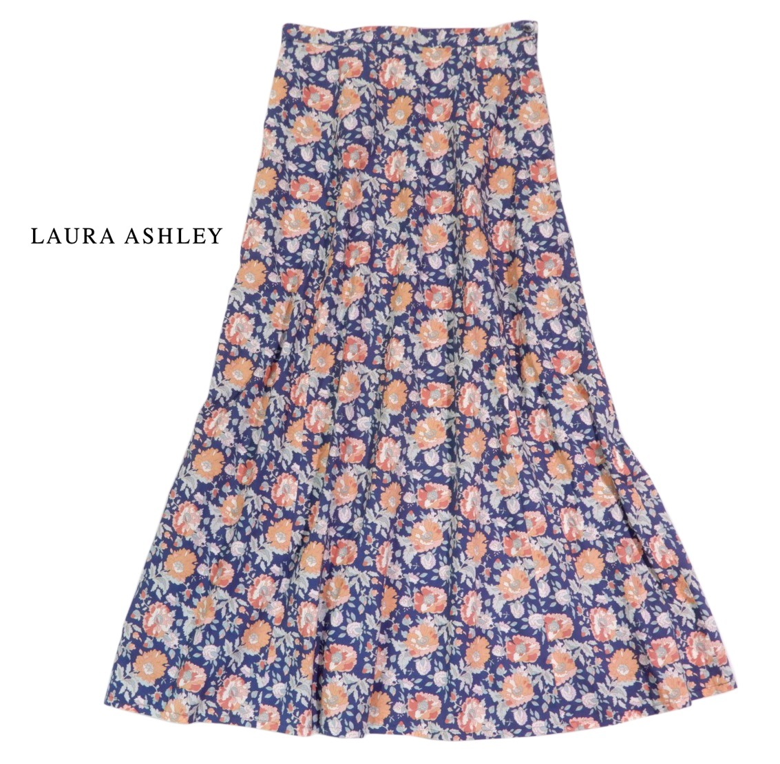 ローラアシュレイ スカート サイズ表記は11号 丈87です。 お色はネイビー地に花柄です。 素材は 表、裏地共に綿100%です。 平置き実寸で w34×2 H50×2 総丈89㎝位です。 |