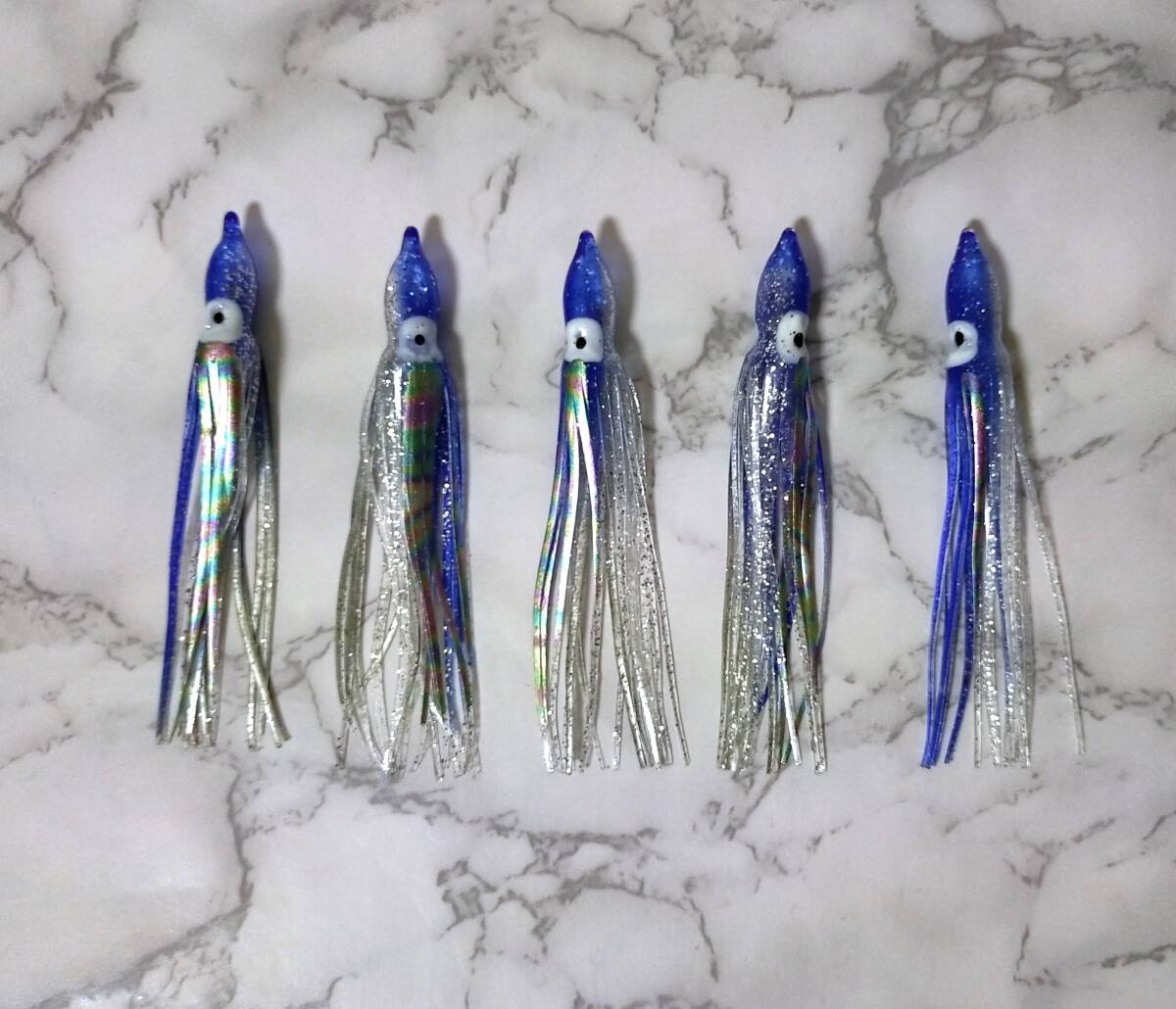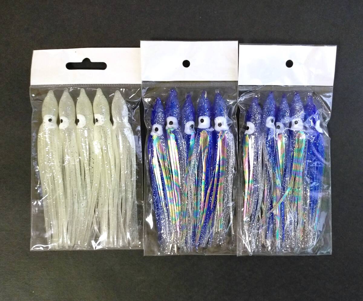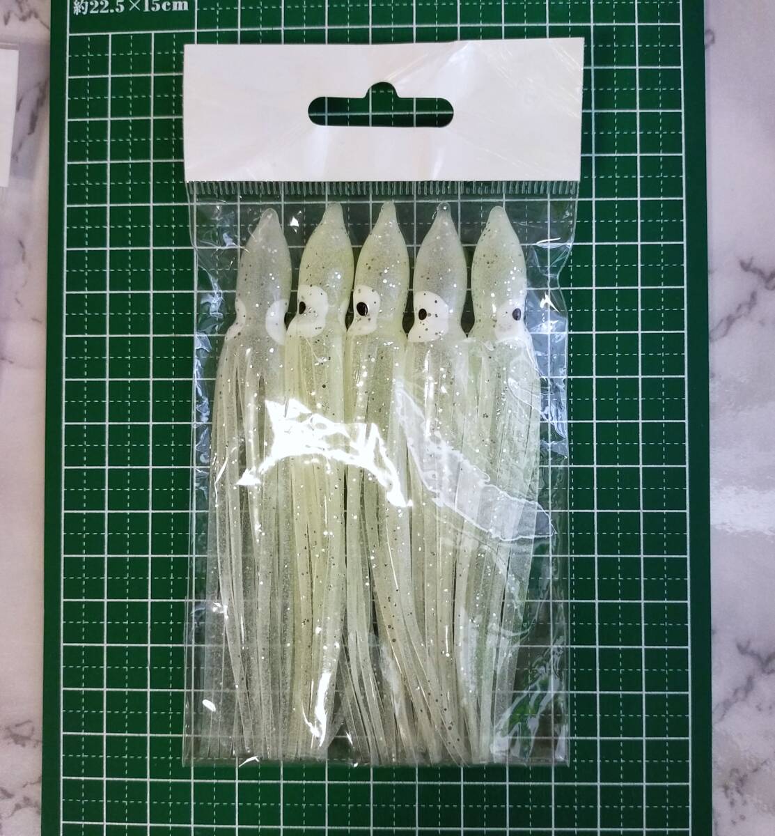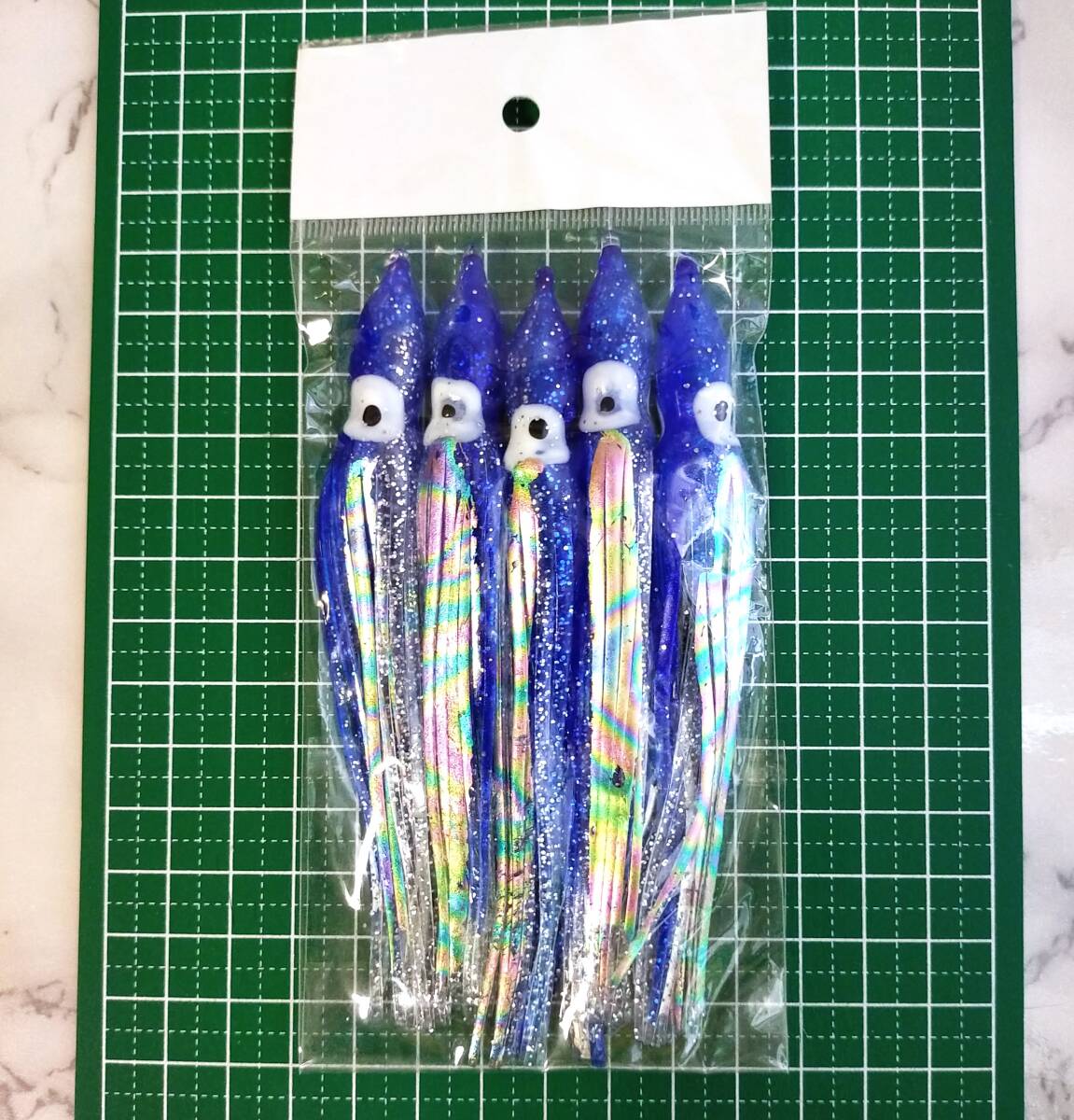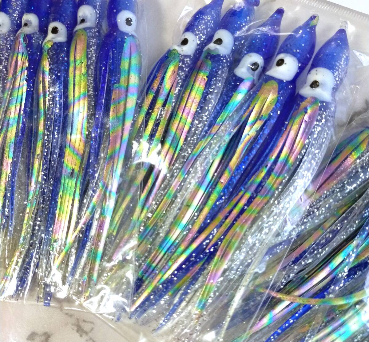 タコベイト 約12cm 15個 ブルー 半透明 ホワイト オーロラ 青 白 透明 グロー ラメ レインボー 光彩 自作 ルアー 仕掛け