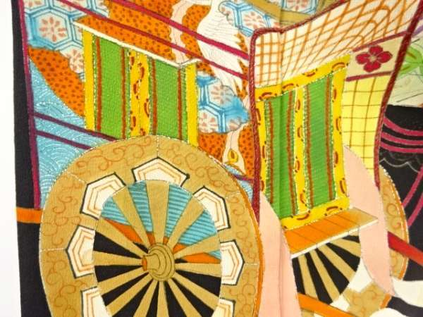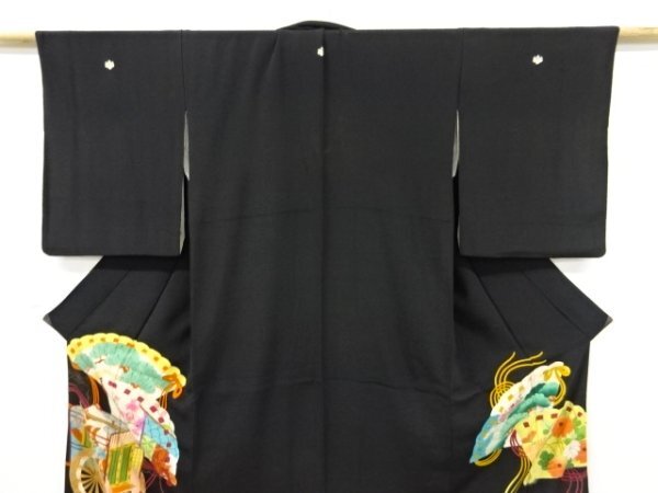 ys7399367; 錦紗檜扇に御所車模様刺繍留袖【アンティーク】【着】