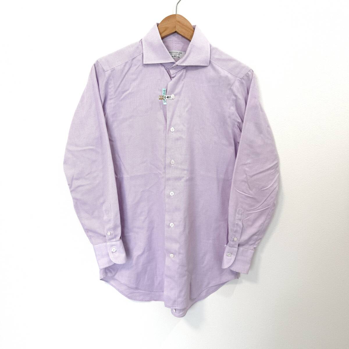 f2923ii TOMORROWLAND PILGRIM(トゥモローランド ピルグリム)サイズ38(M) Yシャツ 長袖 綿100% パープル系 メンズ 日本製