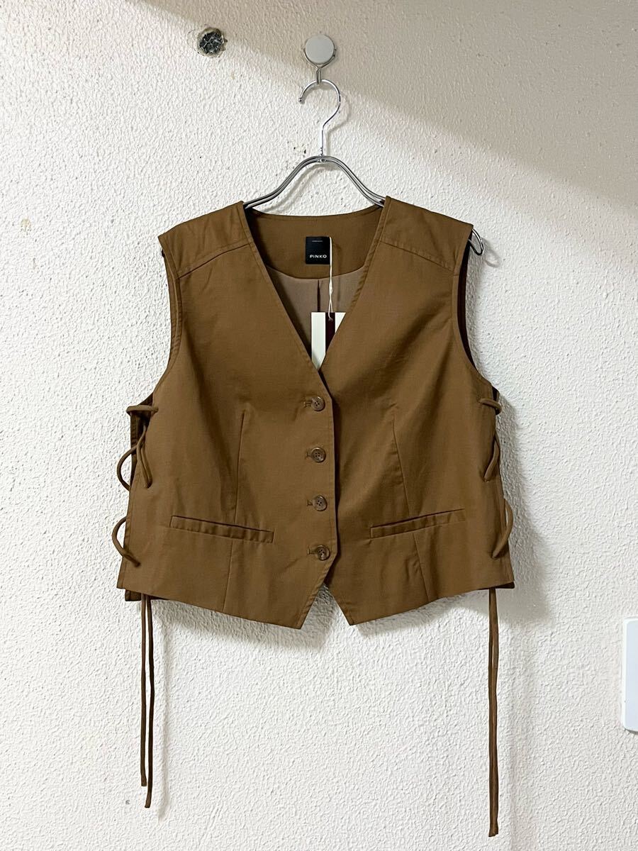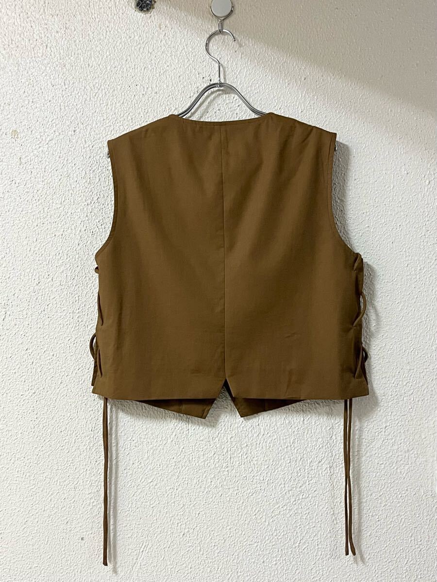 イタリア製、リネン60%コットン40%混紡のベストです。サテン裏地付き、両脇のサイドにレース編みになったカジュアルながら、高級感のあるデザインのベストです。