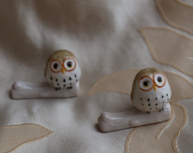カワイイ!フクロウ 梟 ふくろう 箸置き 2個セット 横幅約5cm 陶器製 ほぼ未使用品