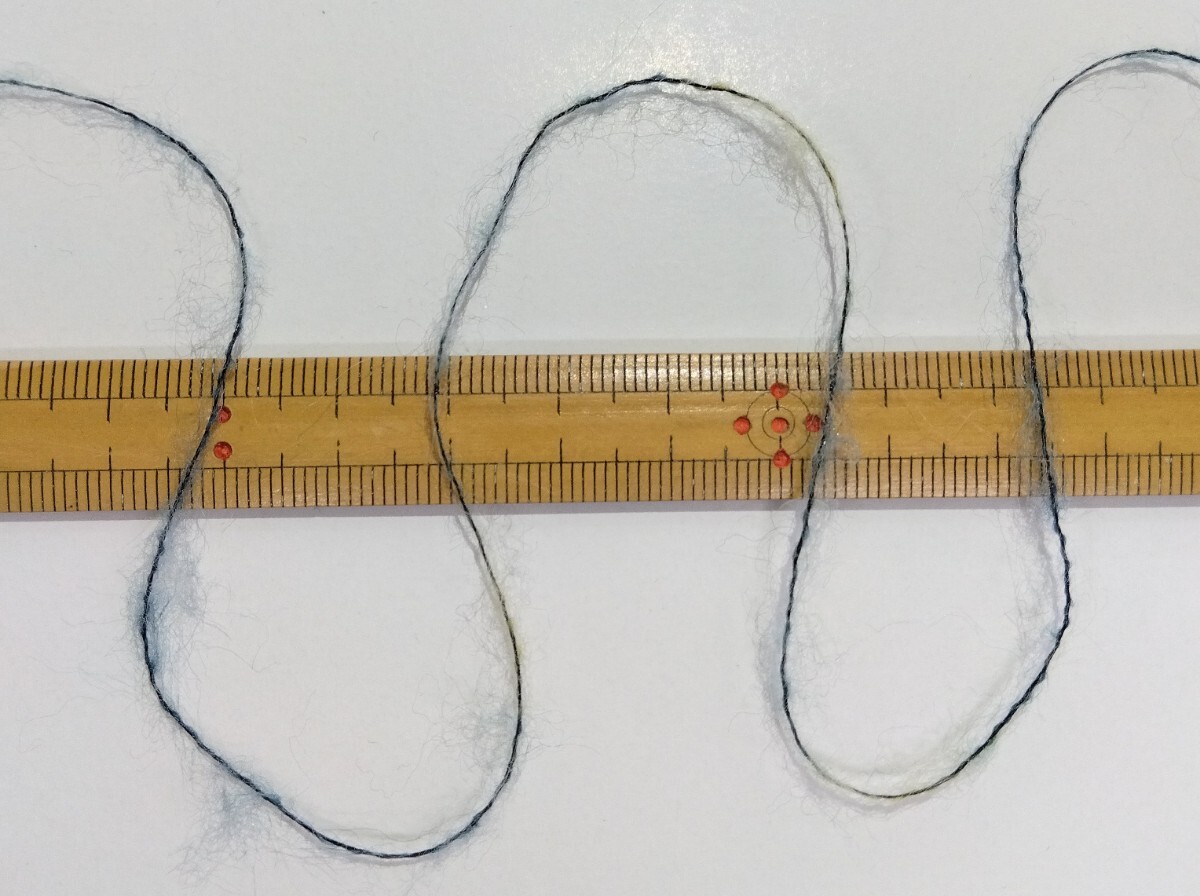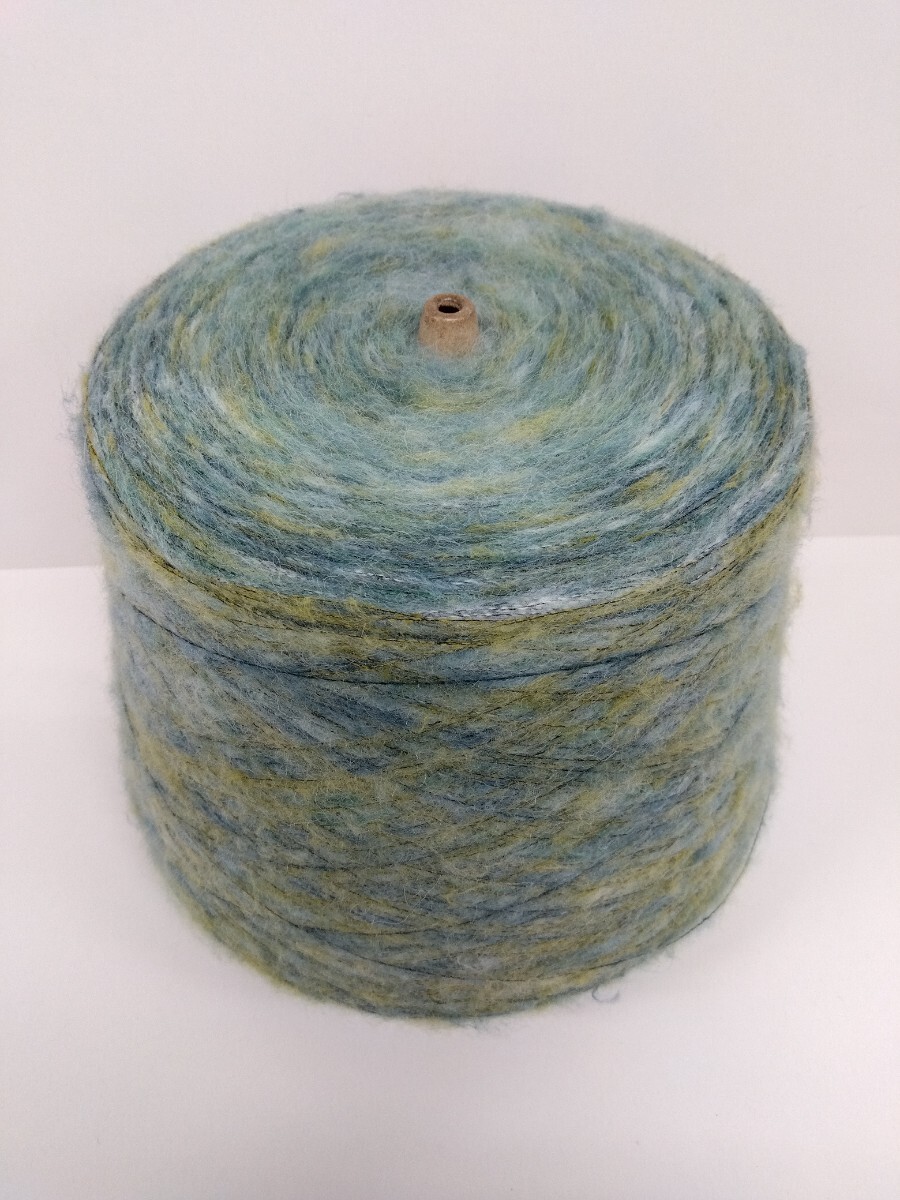 柔らかくて毛羽立ち感のある編めばわかる4色染めの絣糸です。