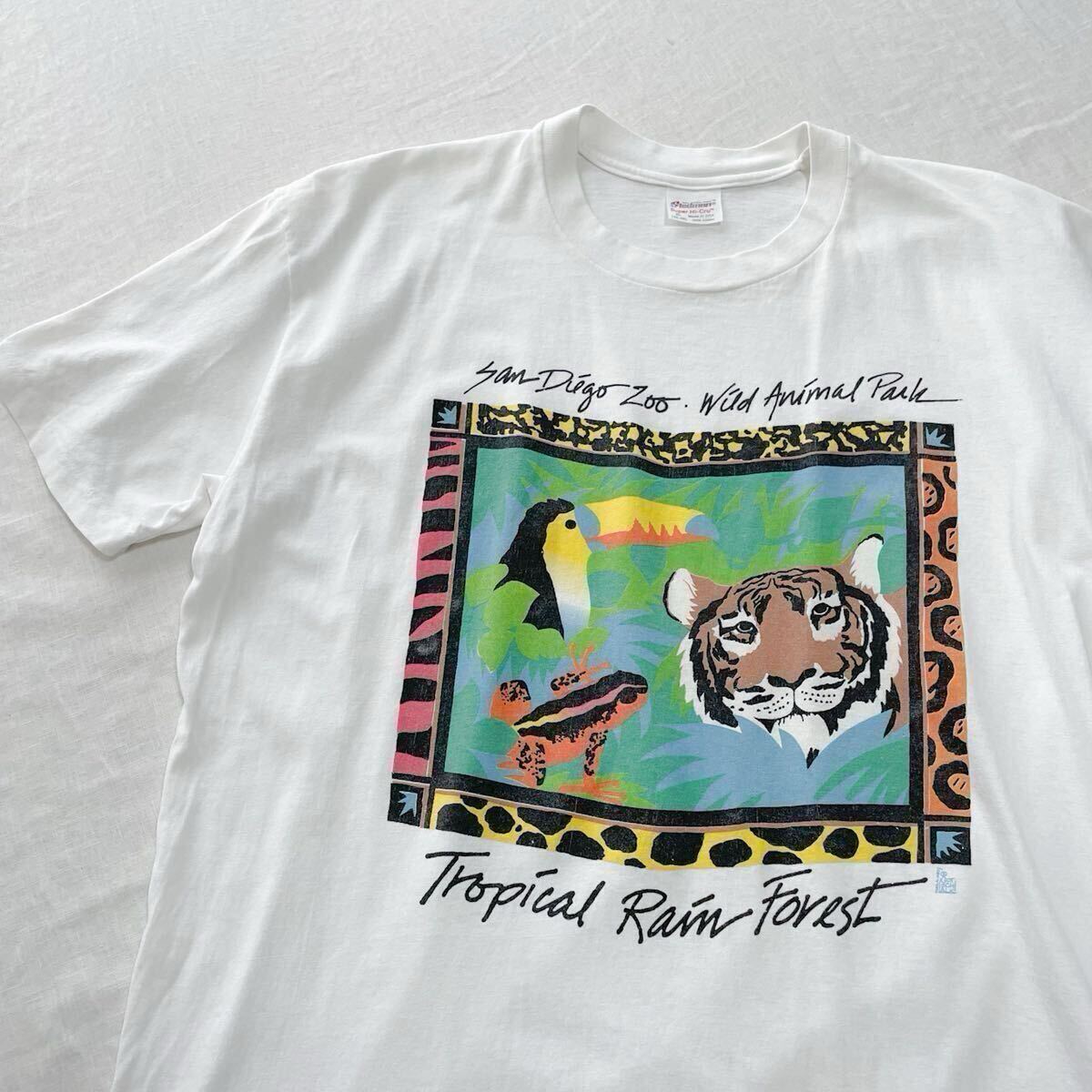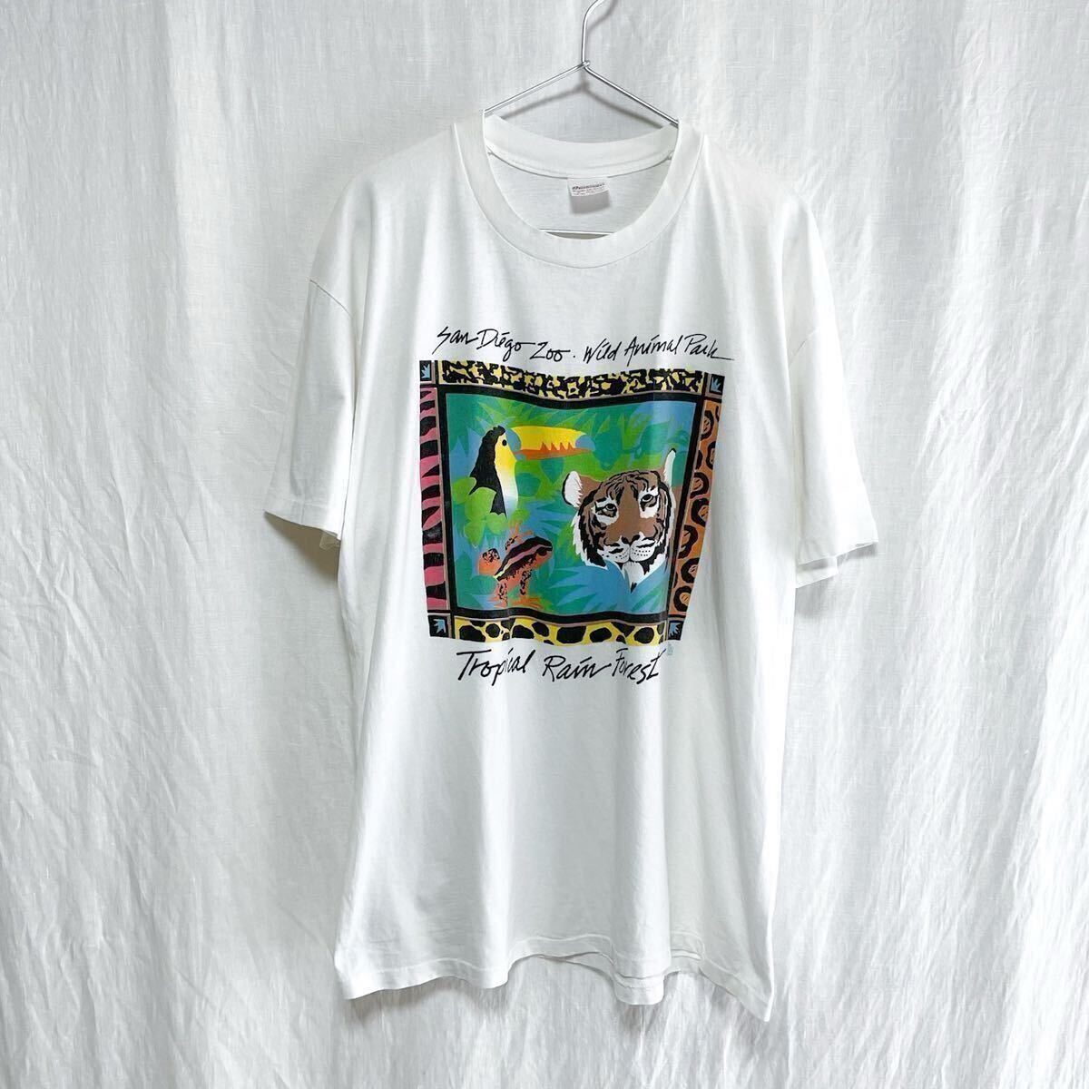 90s STEDMAN アニマルプリント Tシャツ XL 虎 カエル 九官鳥 動物園