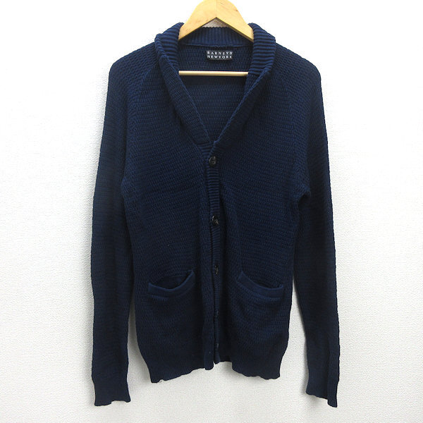 D■バーニーズニューヨーク/BARNEYS NEWYORK ショールカラー カーディガン【S】紺/MENS/68【中古】■