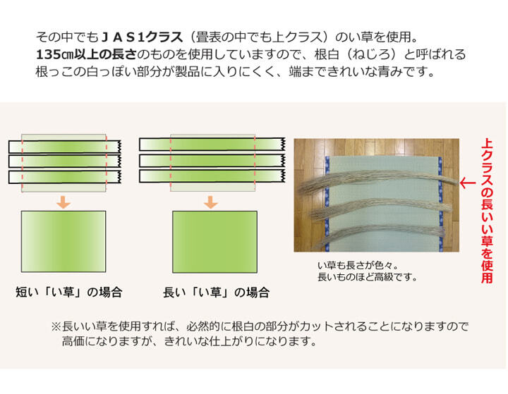 | 表地=い草(熊本県八代産)※麻綿織 ヘリ=ポリプロピレン、ポリエチレン |