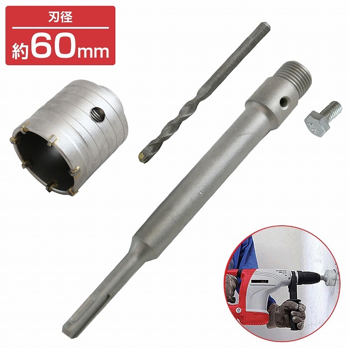 【送料無料】刃径 60mm コアドリル シャンク センタードリル 穴あけ 陶器瓦 いぶし瓦 粘度瓦 モルタル ブロック レンガ ALC コンクリート
