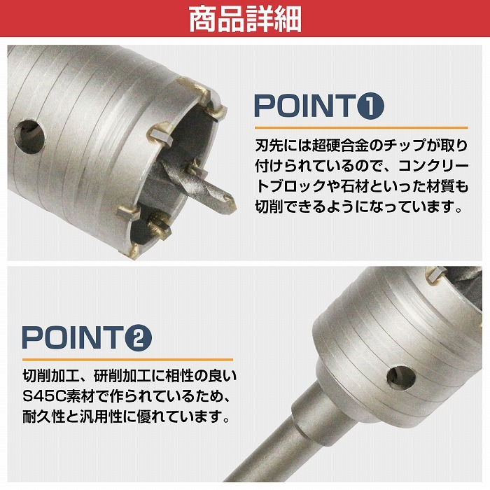 レンガ、ALC、日本壁などの穴あけができるコアドリルです。