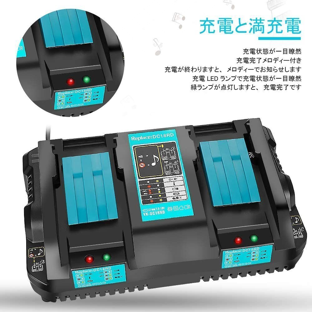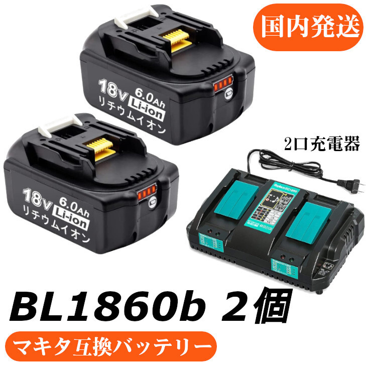マキタ互換バッテリー 18v PB BL1860b 互換バッテリー 18V 6.0Ah 残量表示付 2個セット + DC18RD 4A 2口充電器セット