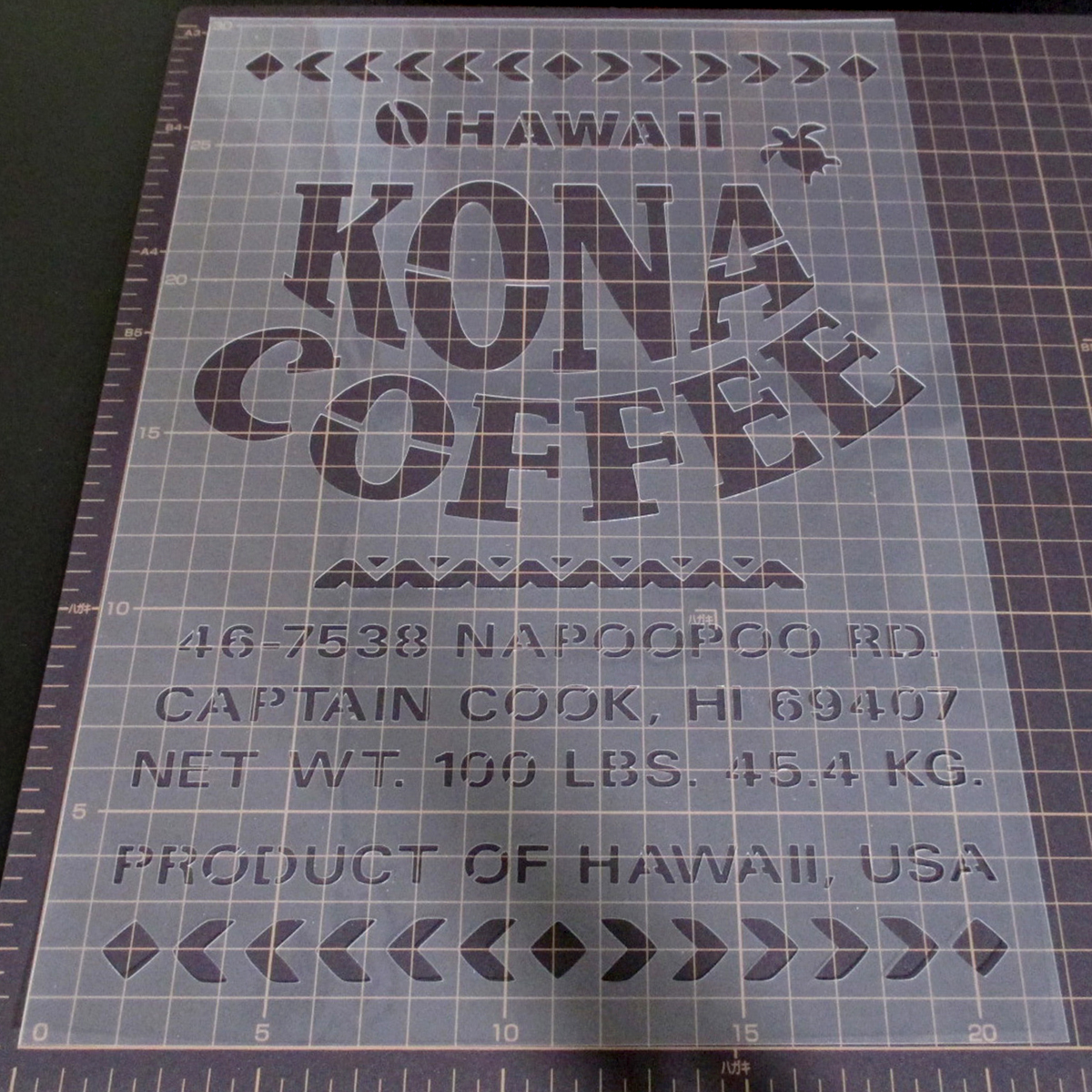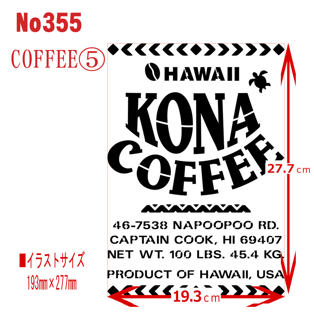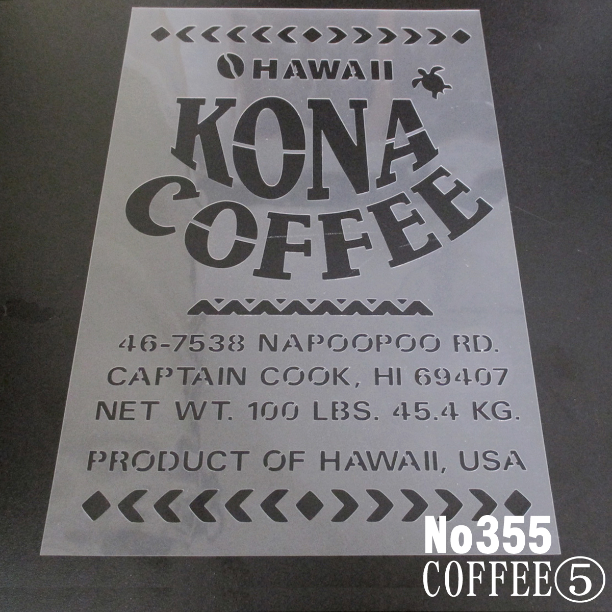 ☆CAFE風デザイン5番 KONA COFFEE ステンシルシート 型紙 図案 NO355